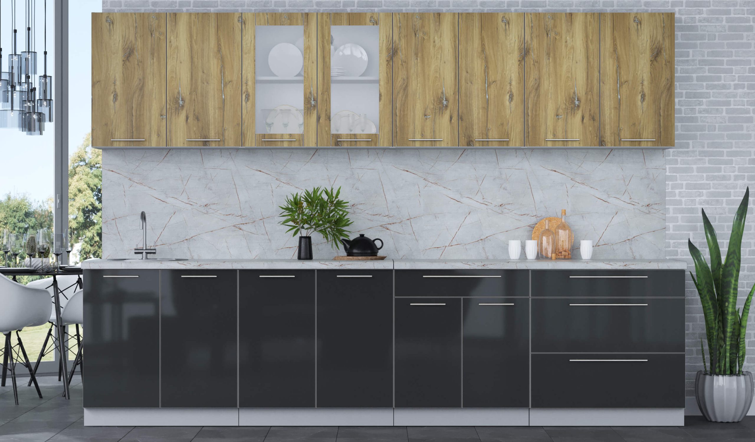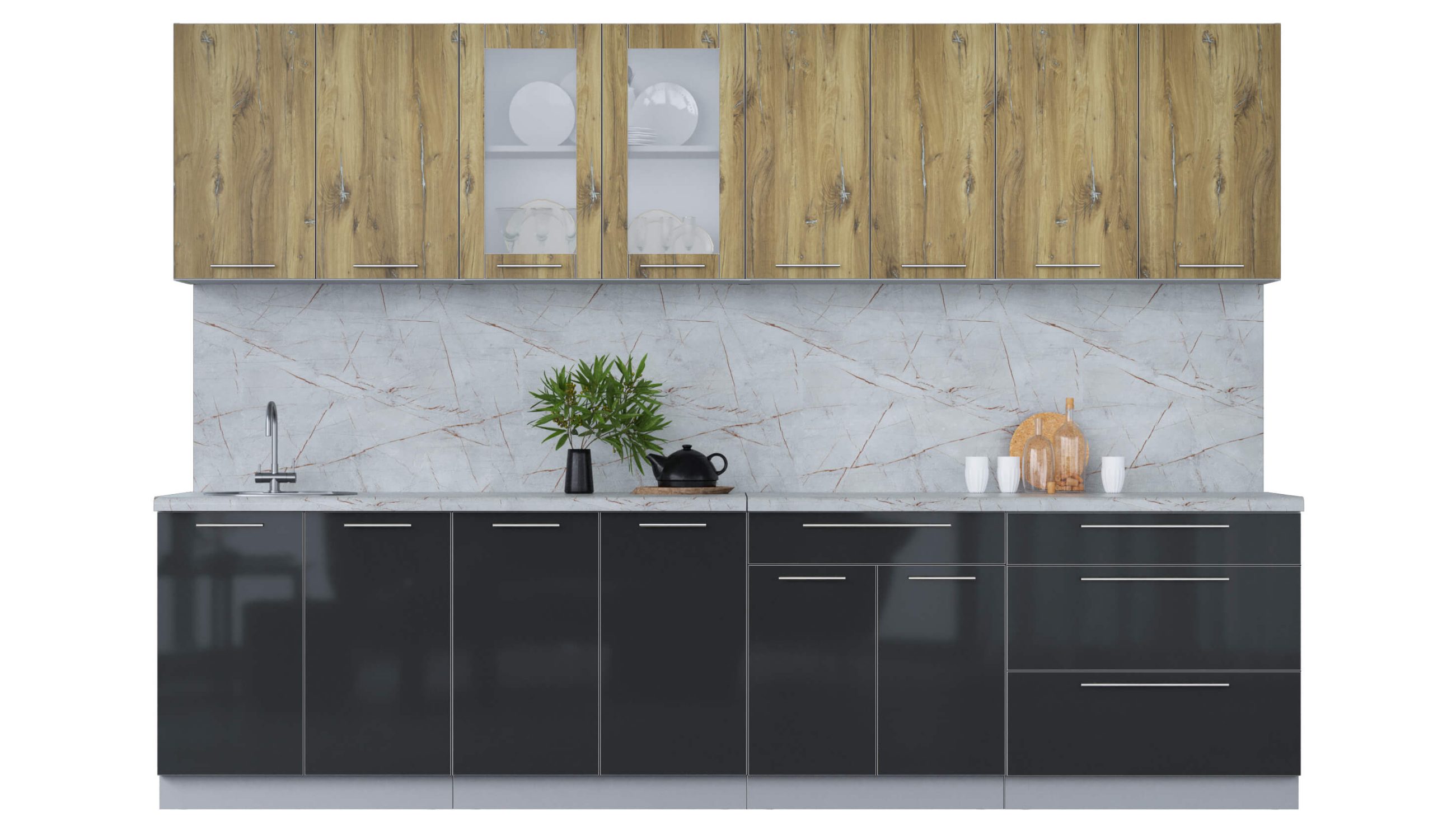 ГОТОВАЯ КУХНЯ ПЛАСТИК 3,1Б (ДУБ ЭПОКСИД/ АНТРАЦИТ) - Yuta.by
