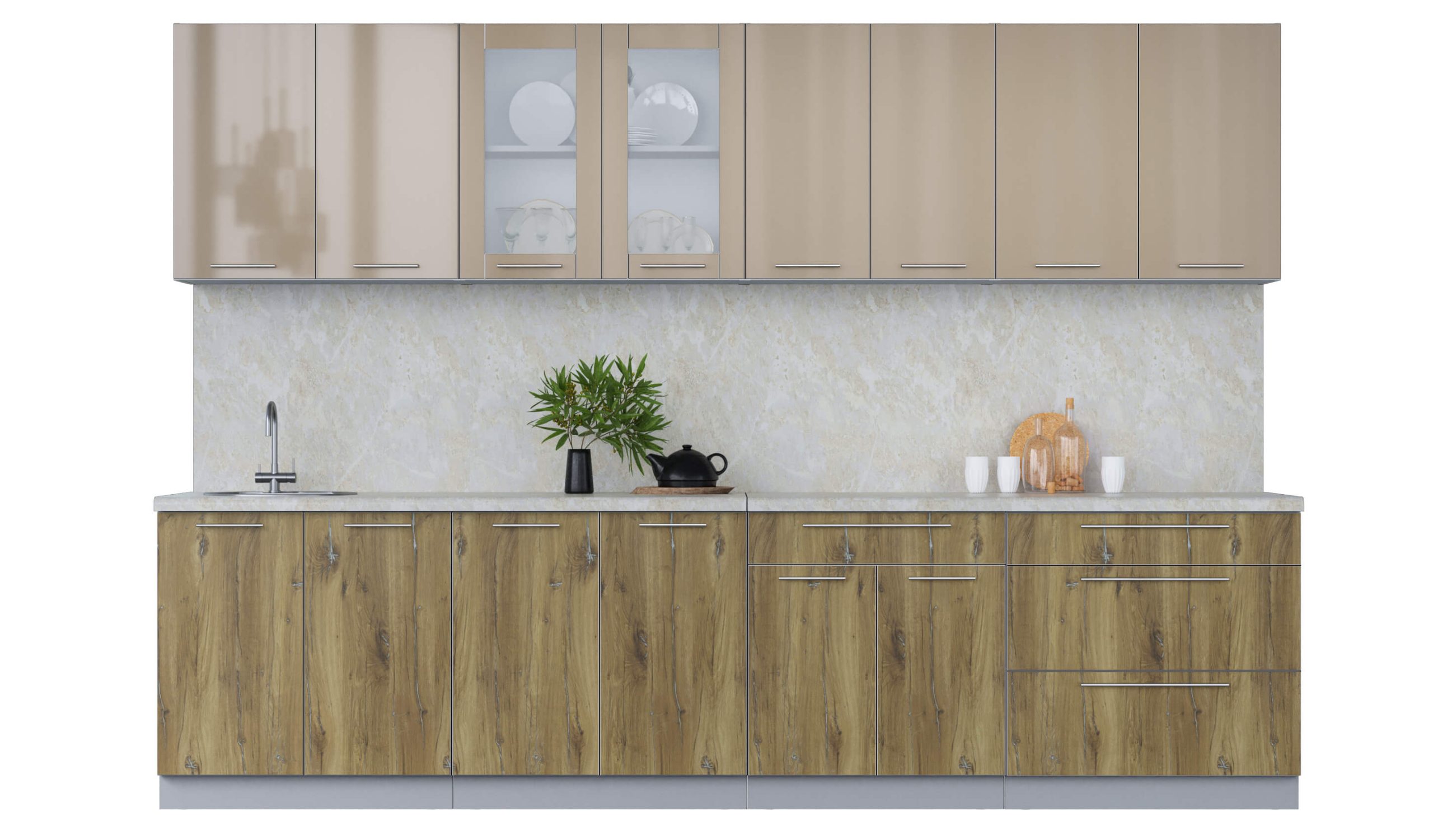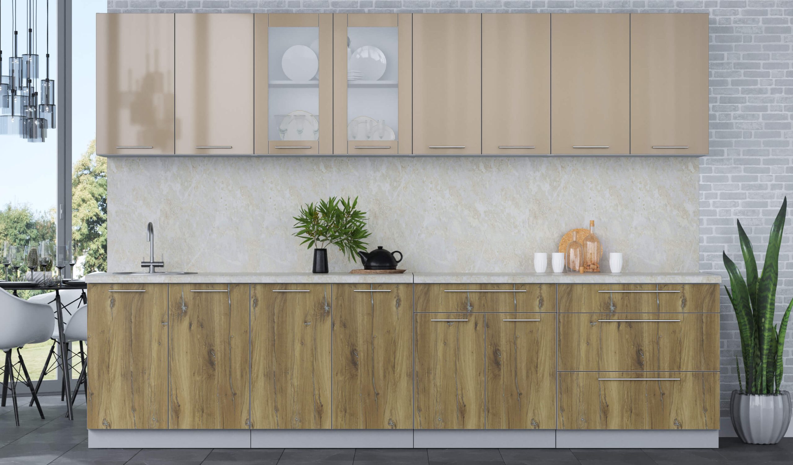 ГОТОВАЯ КУХНЯ ПЛАСТИК 3,1Б (КАПУЧИНО ГЛЯНЕЦ/ ДУБ ЭПОКСИД) - Yuta.by