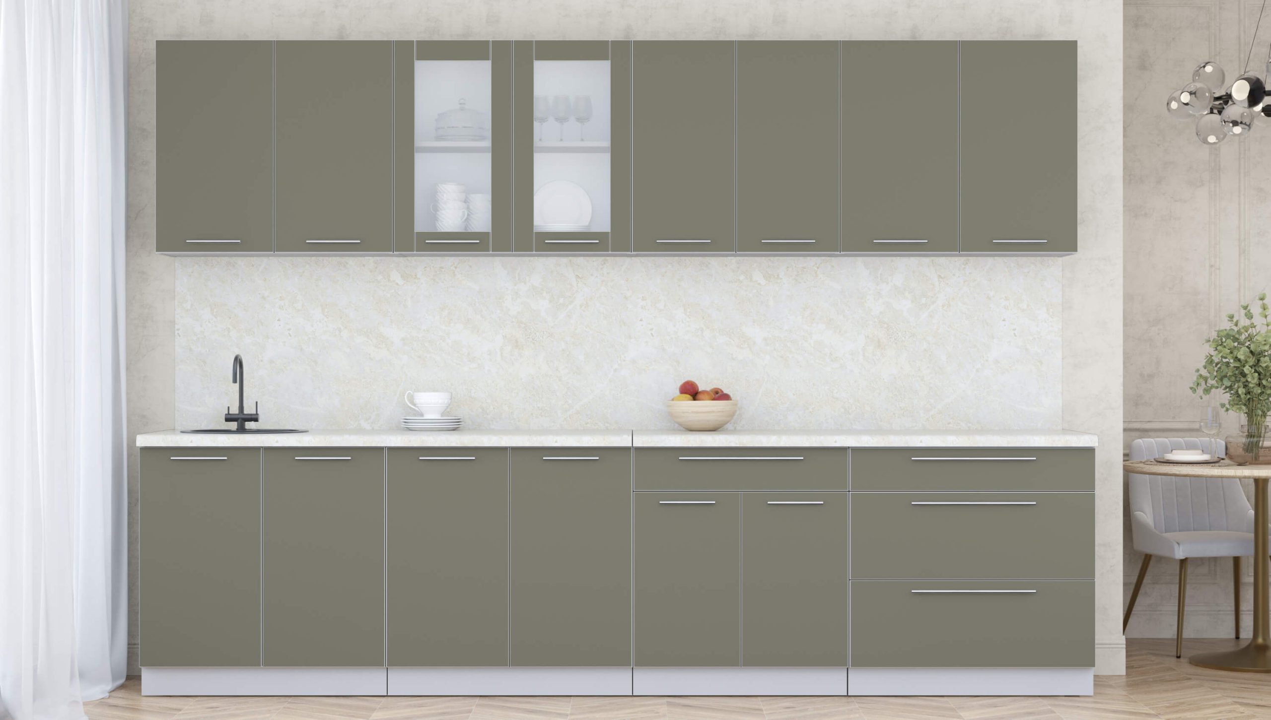 ГОТОВАЯ КУХНЯ ПЛАСТИК 3,1Б (КВАРЦЕВЫЙ/ КВАРЦЕВЫЙ) - Yuta.by