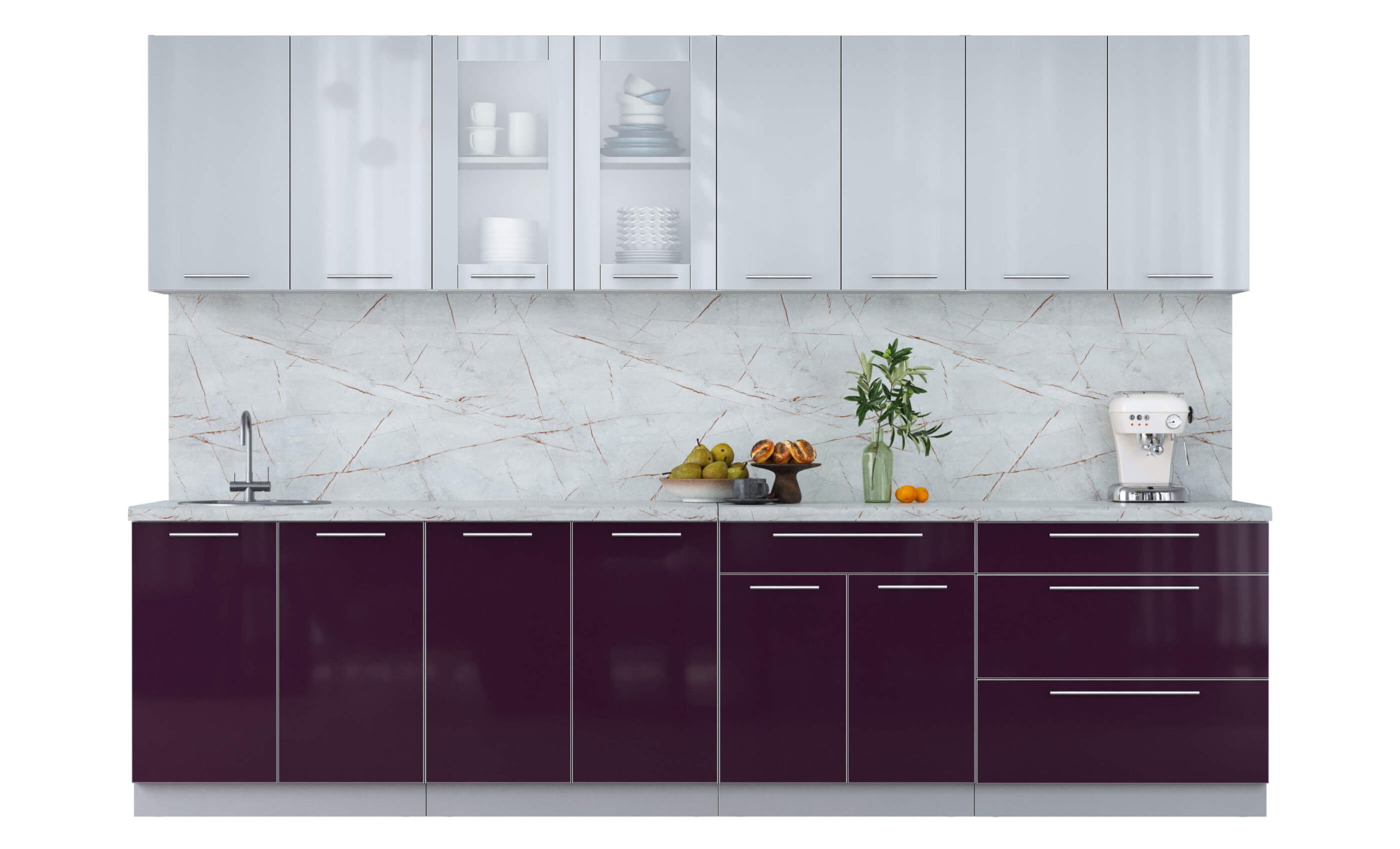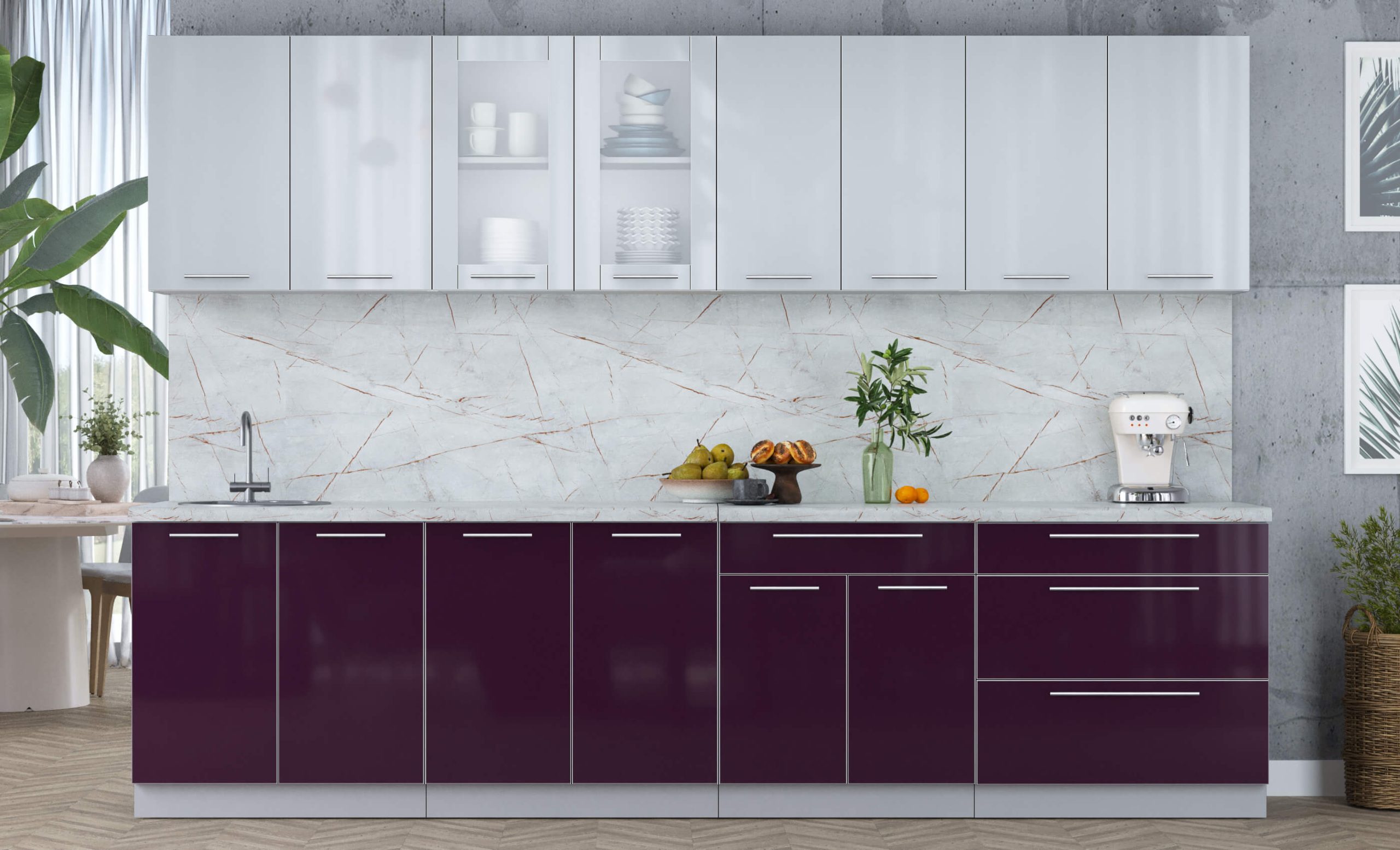 ГОТОВАЯ КУХНЯ ПЛАСТИК 3,1Б (ТУМАННЫЙ ГЛЯНЕЦ/ СЛИВА ГЛЯНЕЦ) - Yuta.by