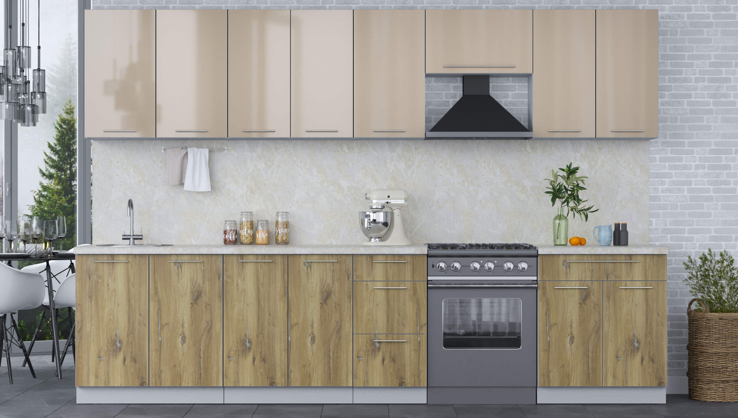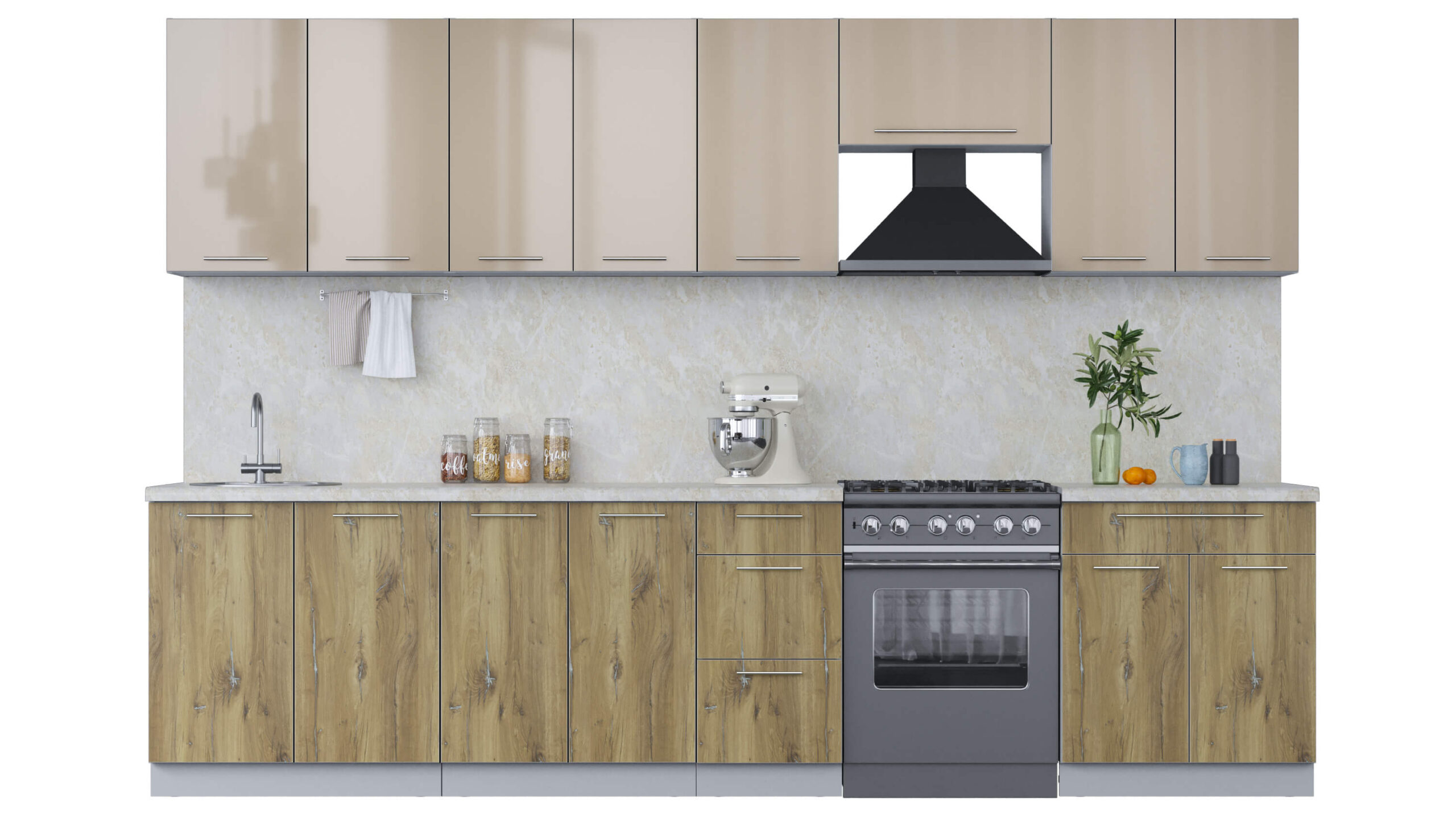 ГОТОВАЯ КУХНЯ ПЛАСТИК 3,2А (КАПУЧИНО ГЛЯНЕЦ/ ДУБ ЭПОКСИД) - Yuta.by