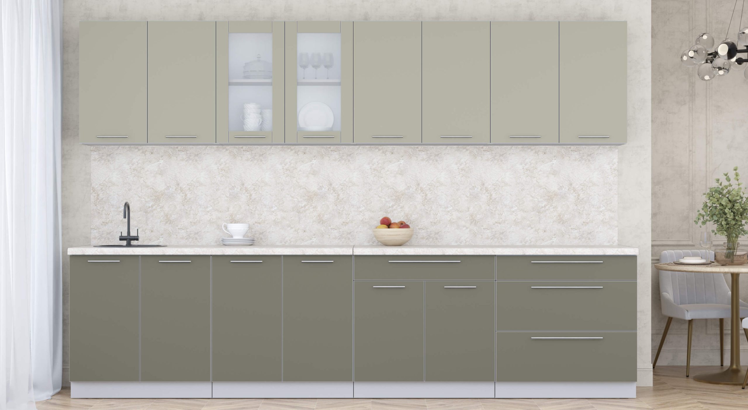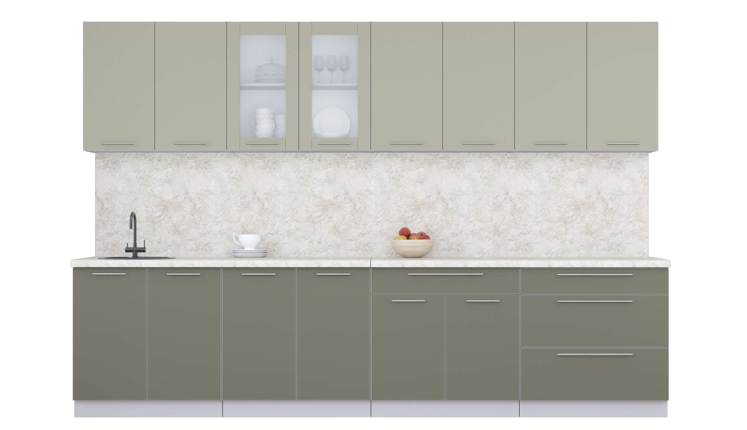 ГОТОВАЯ КУХНЯ ПЛАСТИК 3,2Б (ЛАТТЕ/ КВАРЦЕВЫЙ) - Yuta.by