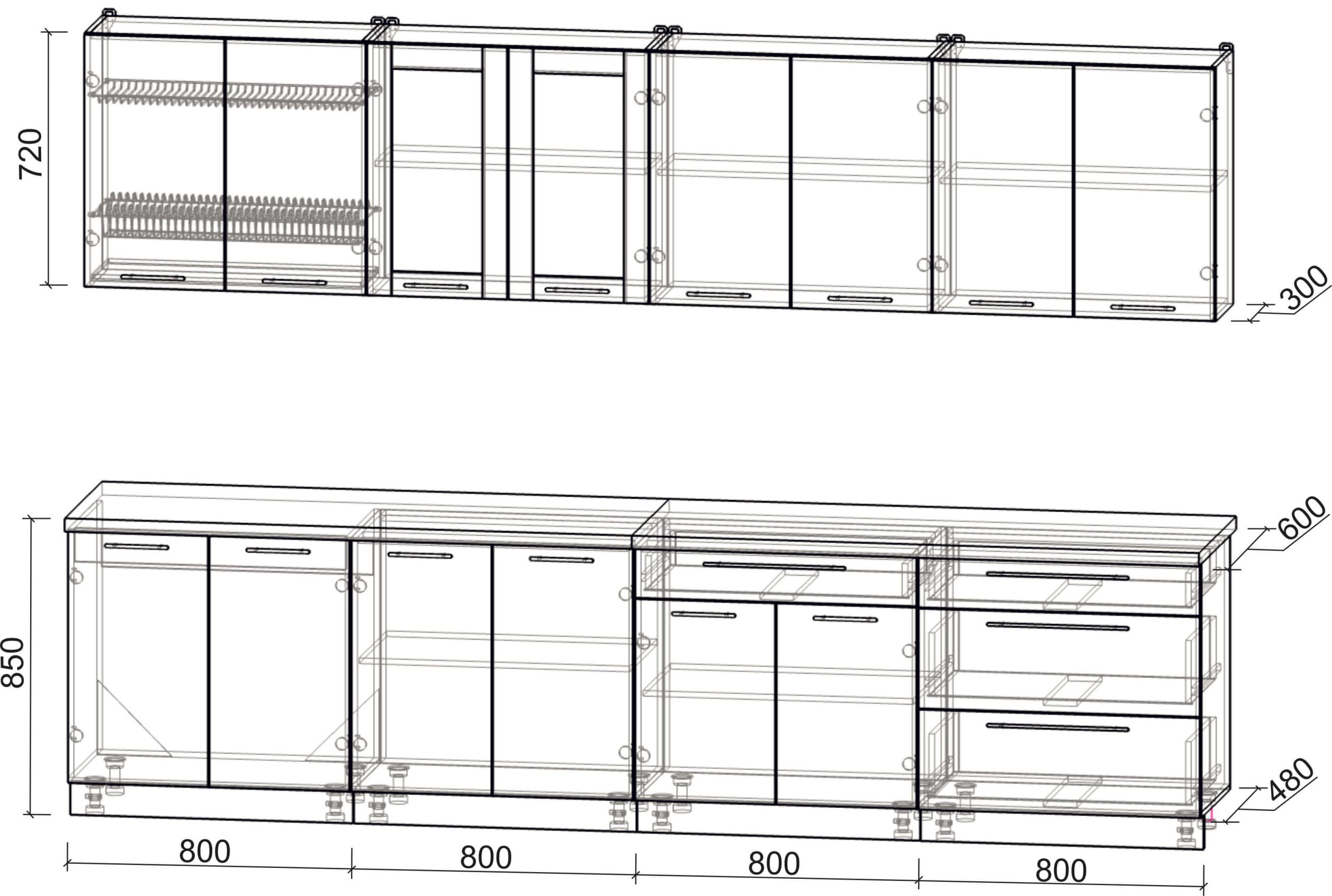 Глубина верхних шкафов