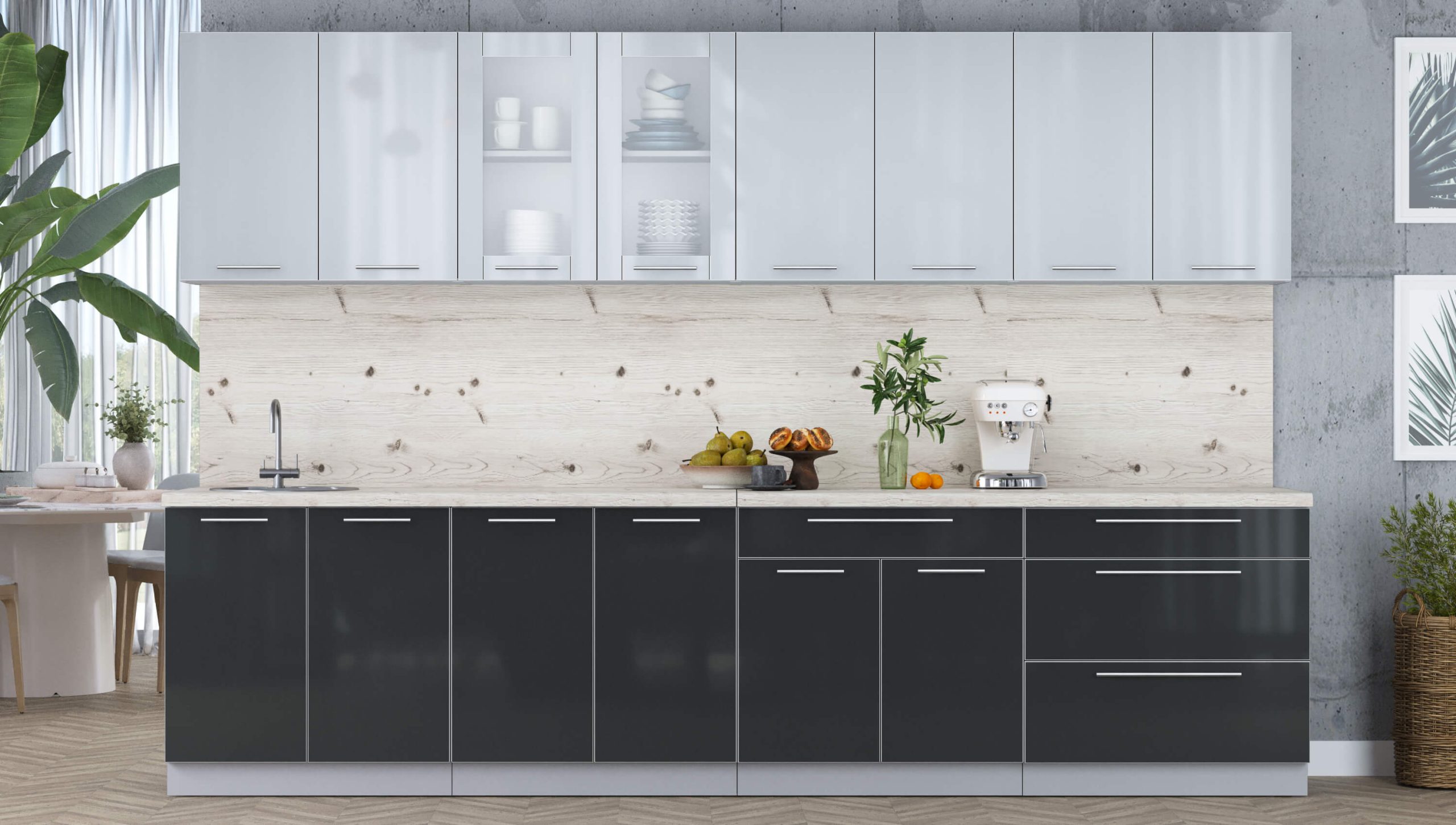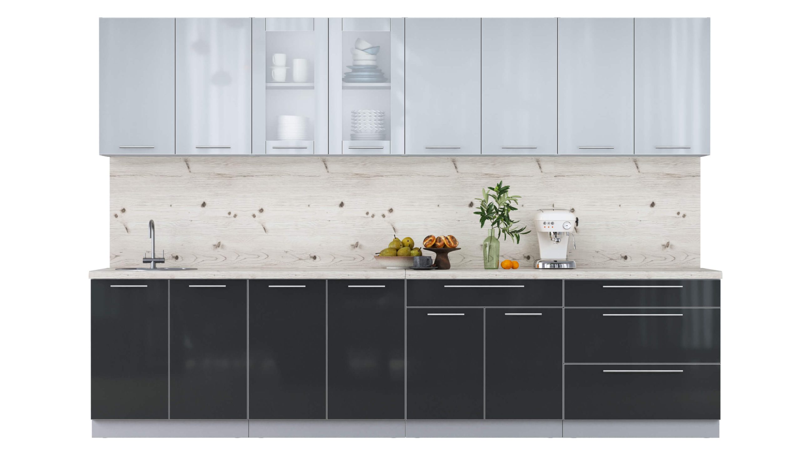 ГОТОВАЯ КУХНЯ ПЛАСТИК 3,2Б (ТУМАННЫЙ ГЛЯНЕЦ/ АНТРАЦИТ) - Yuta.by