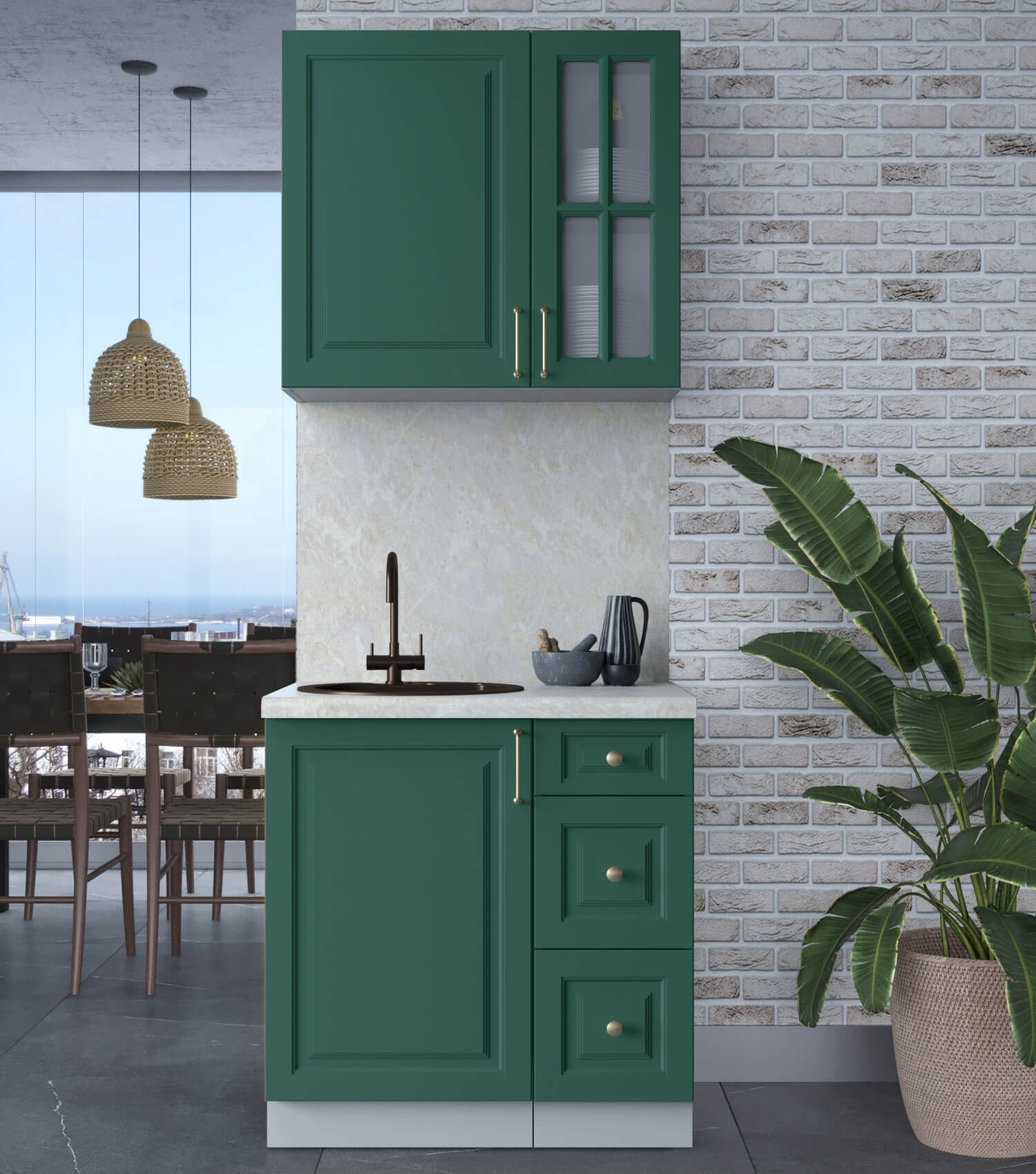 ГОТОВАЯ КУХНЯ ШАТО SOFT-TOUCH 0,8А (ИЗУМРУД/ ИЗУМРУД) - Yuta.by
