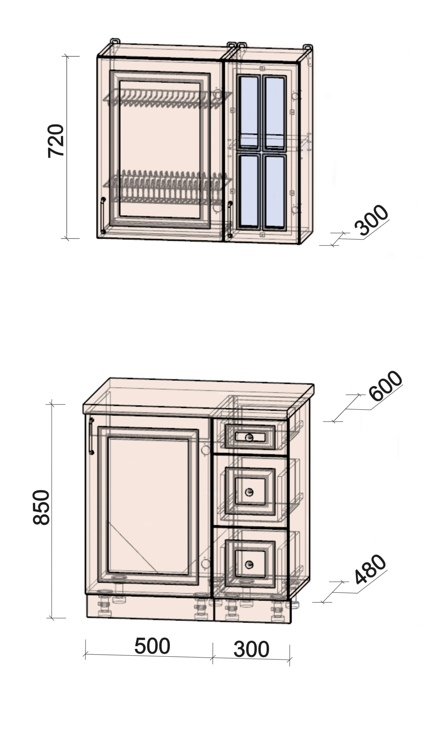 • шкаф нижний под духовой шкаф шириной 600 мм;