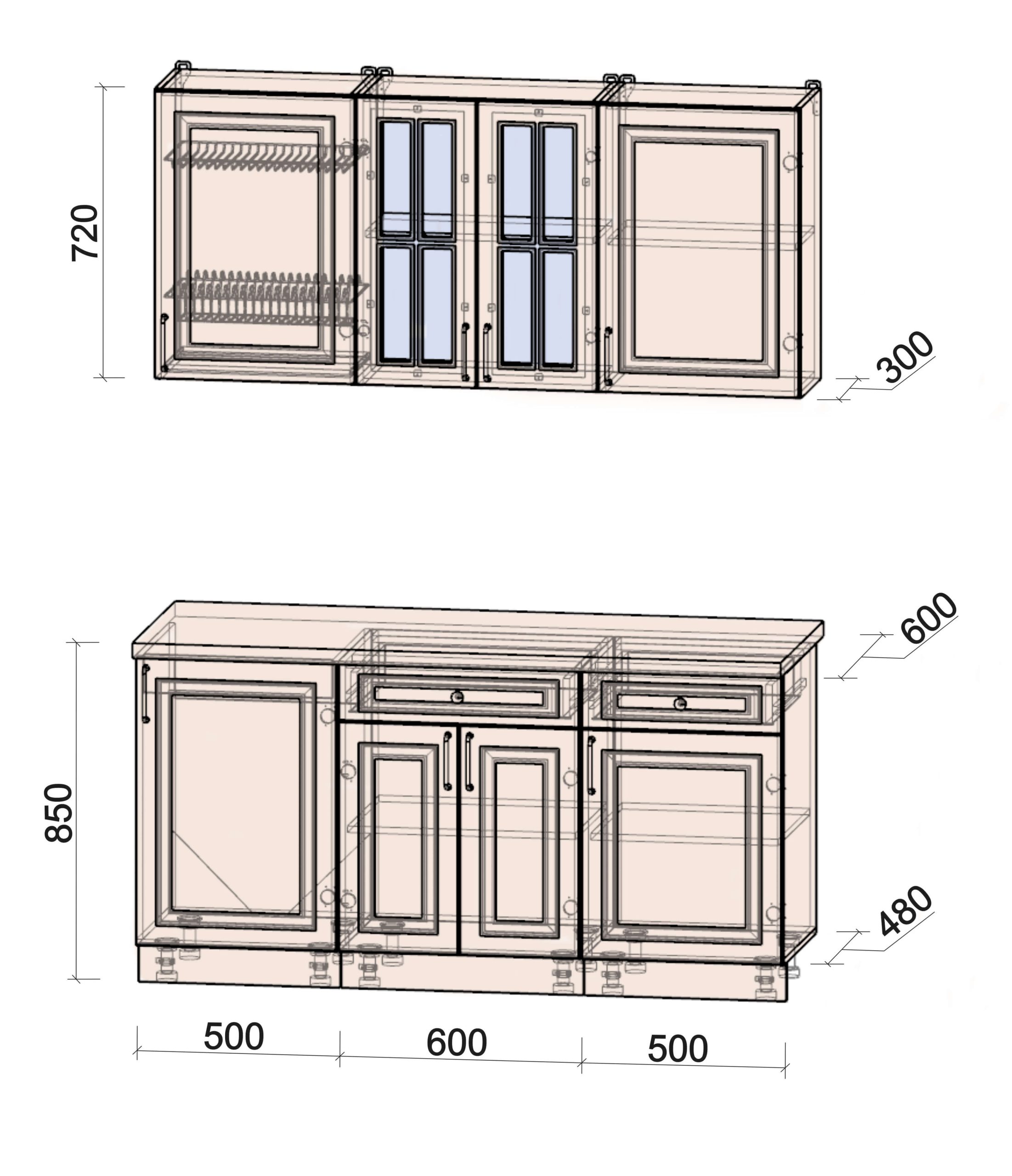 • шкаф нижний под духовой шкаф шириной 600 мм;