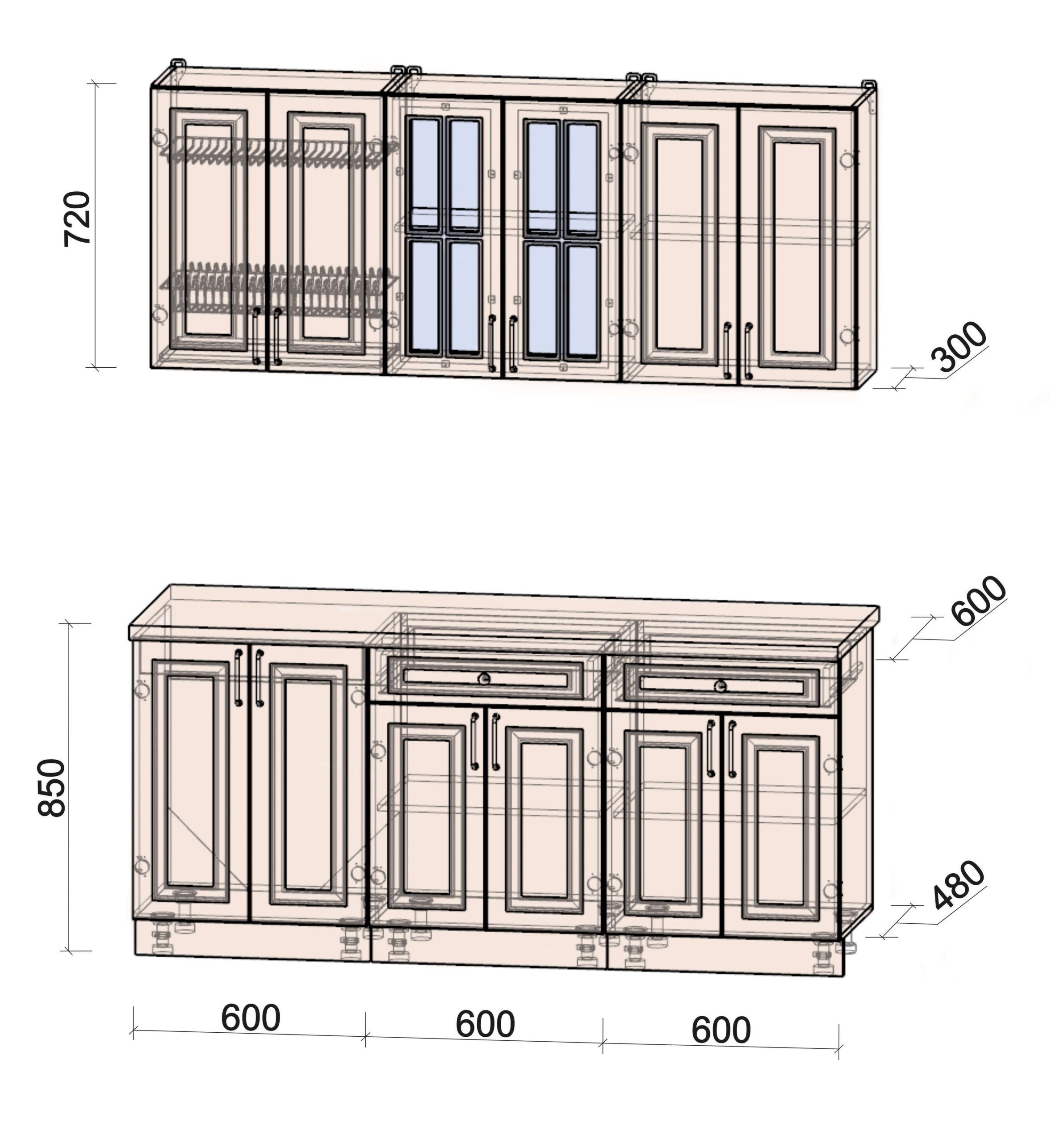 • Заказать кухню Мила «Шато» можно в виде готового набора и по модулям;