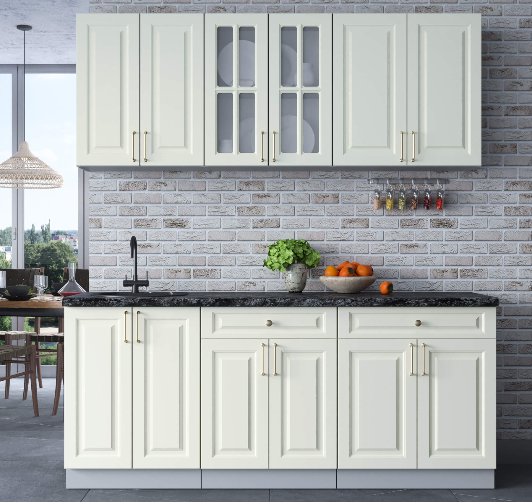 ШАТО отходит от строгих канонов и сохраняет способность гармонично сочетаться с различным декором, будь это винтажные часы, модерн-статуэтки или просто живые цветы. Выполненная в классическом американском стиле, ШАТО легко адаптируется к современным реалиям и хорошо сочетается с любой техникой, одновременно сохраняя лучшие тенденции элегантной мебели в духе домов из голливудских фильмов. Легкие черты многоступенчатых узоров на фасадах ШАТО подчеркивают изящные шпросы и золотистую фурнитуру.  ШАТО будет одинаково уместна в маленькой городской квартире и в просторном загородном доме.
