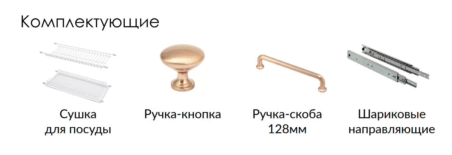 • Заказать кухню Мила «Шато» можно в виде готового набора и по модулям;