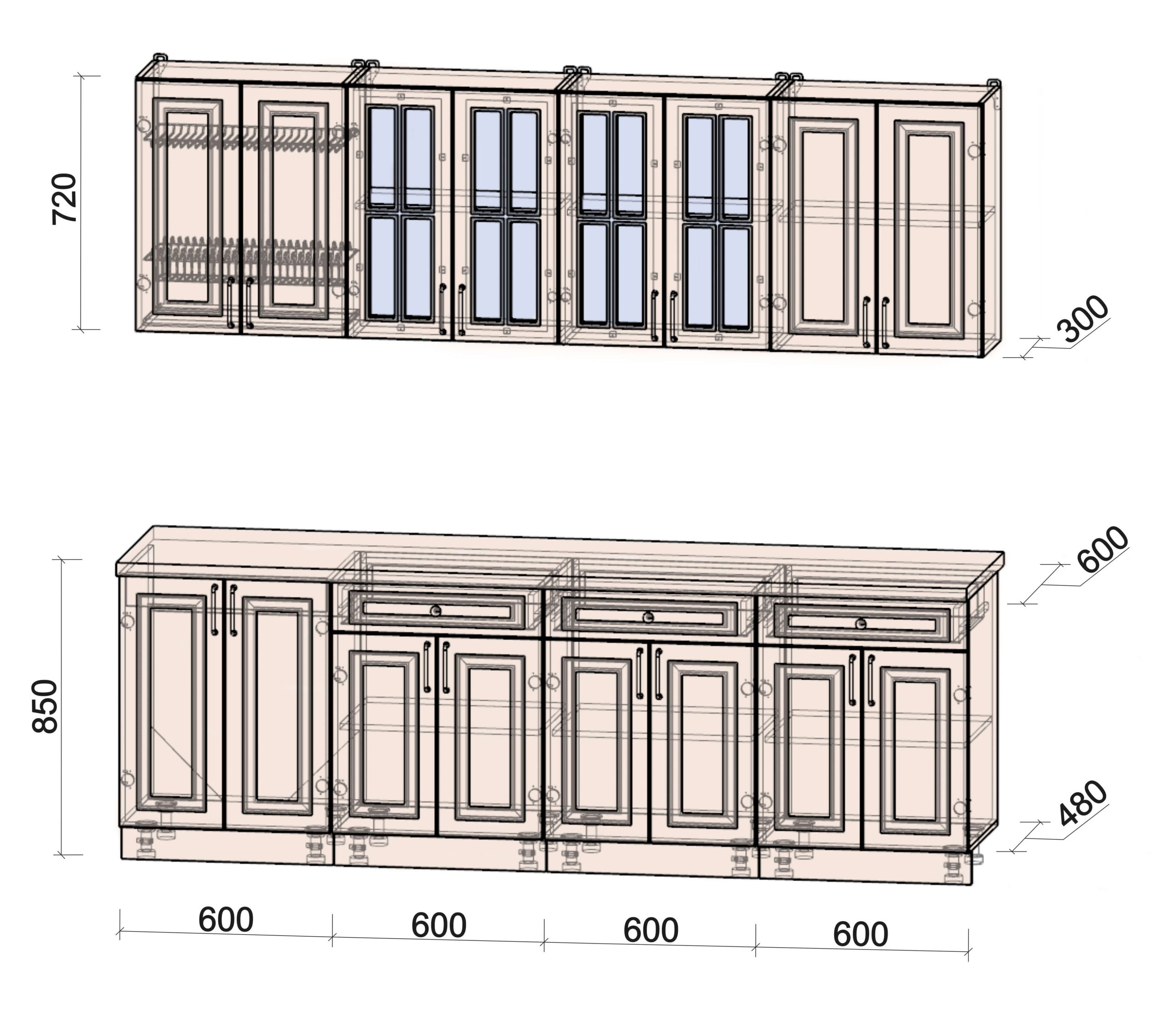 Глубина верхних шкафов