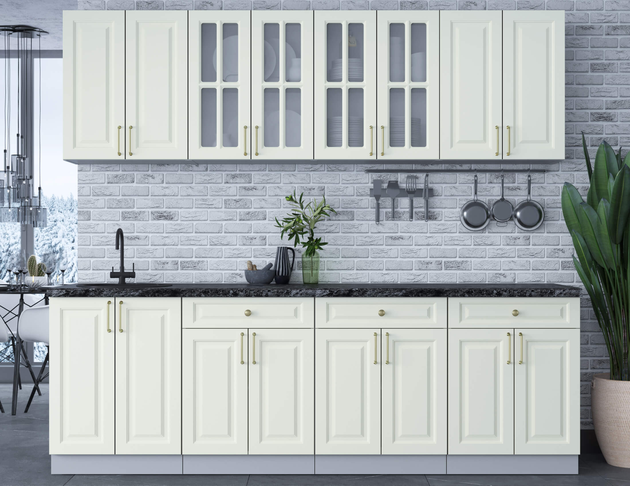 ШАТО отходит от строгих канонов и сохраняет способность гармонично сочетаться с различным декором, будь это винтажные часы, модерн-статуэтки или просто живые цветы. Выполненная в классическом американском стиле, ШАТО легко адаптируется к современным реалиям и хорошо сочетается с любой техникой, одновременно сохраняя лучшие тенденции элегантной мебели в духе домов из голливудских фильмов. Легкие черты многоступенчатых узоров на фасадах ШАТО подчеркивают изящные шпросы и золотистую фурнитуру.  ШАТО будет одинаково уместна в маленькой городской квартире и в просторном загородном доме.