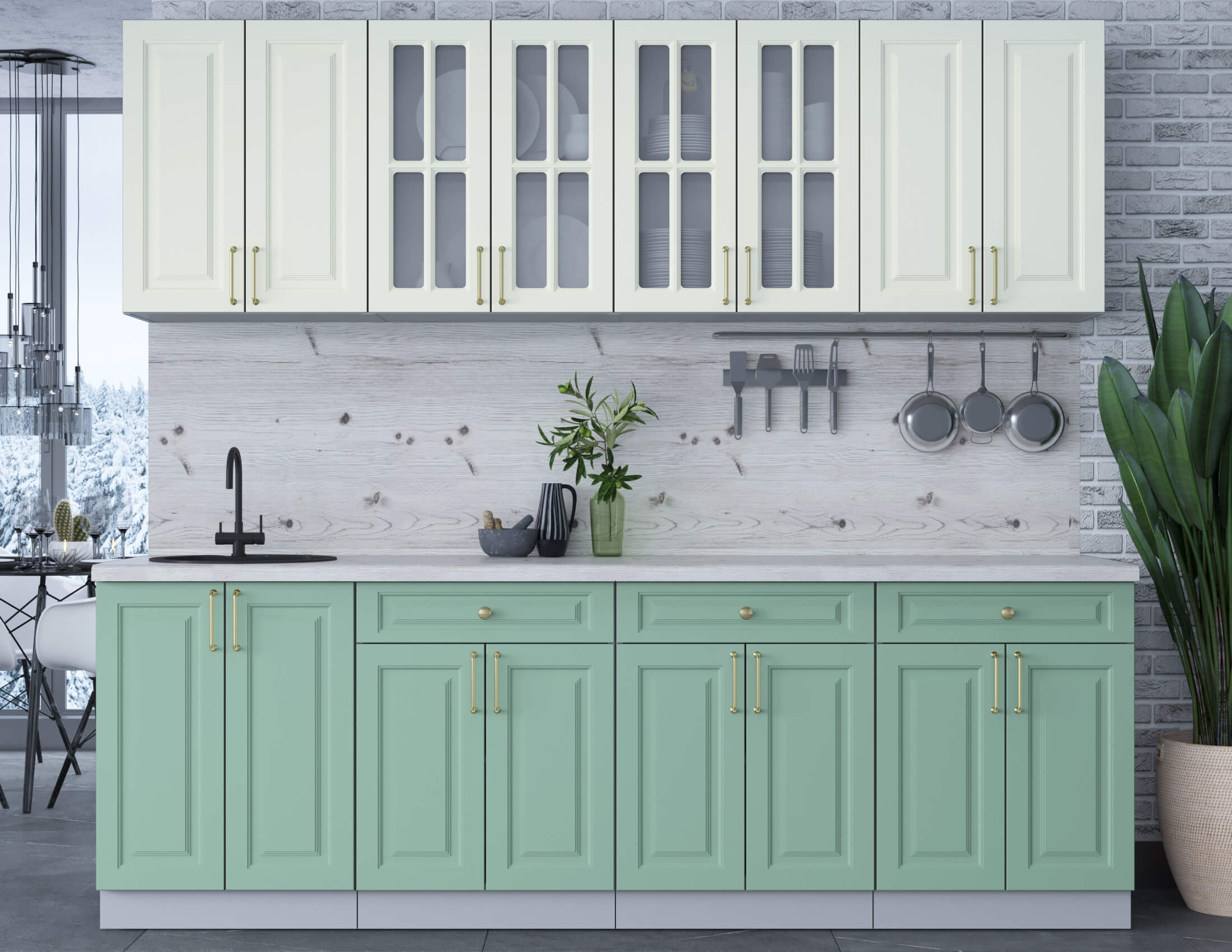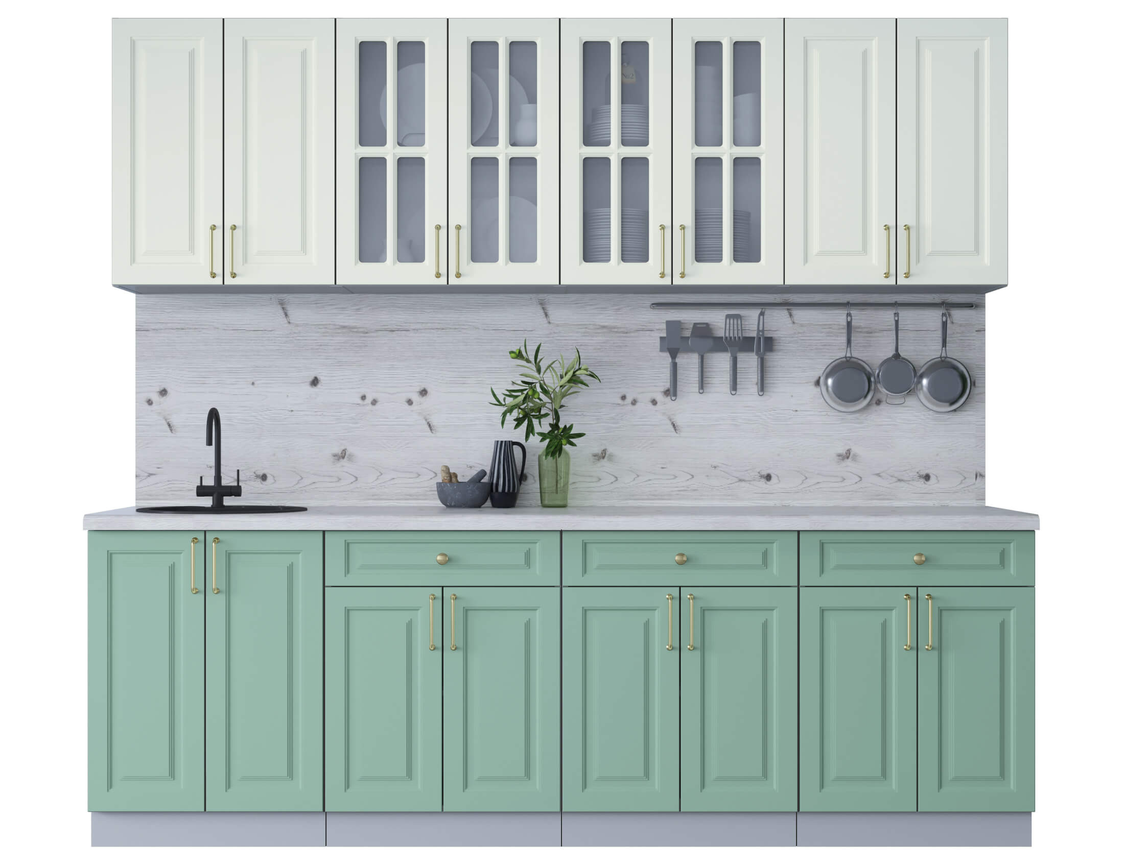 ГОТОВАЯ КУХНЯ ШАТО SOFT-TOUCH 2,4А (БЕЛЫЙ/ МЯТА) - Yuta.by