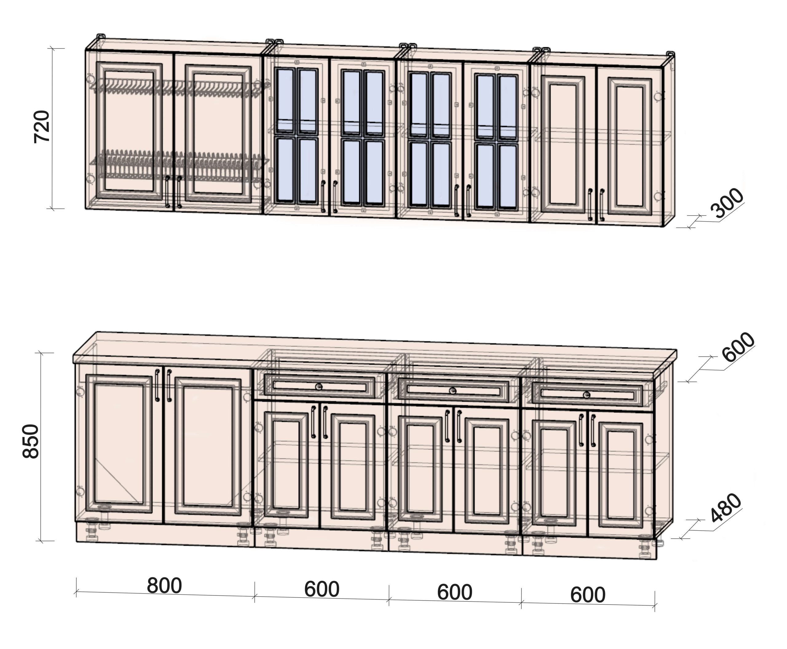 Глубина верхних шкафов