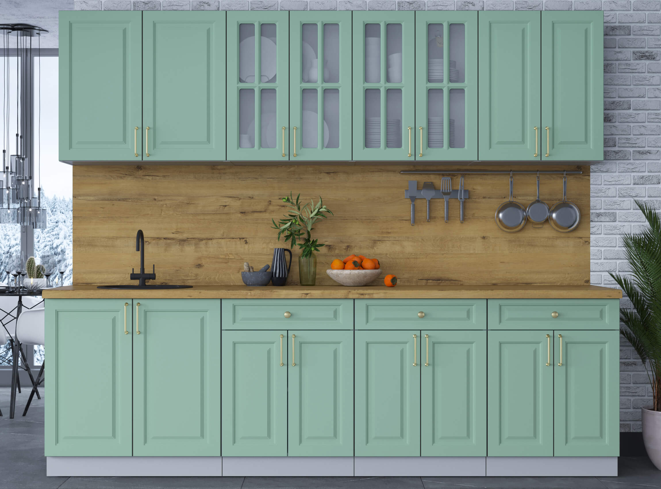 ГОТОВАЯ КУХНЯ ШАТО SOFT-TOUCH 2,6А (МЯТА/ МЯТА) - Yuta.by