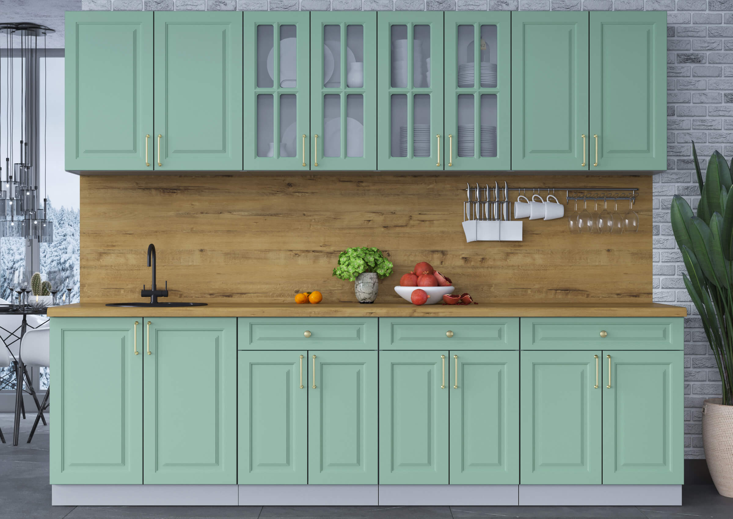 ГОТОВАЯ КУХНЯ ШАТО SOFT-TOUCH 2,7А (МЯТА/ МЯТА) - Yuta.by