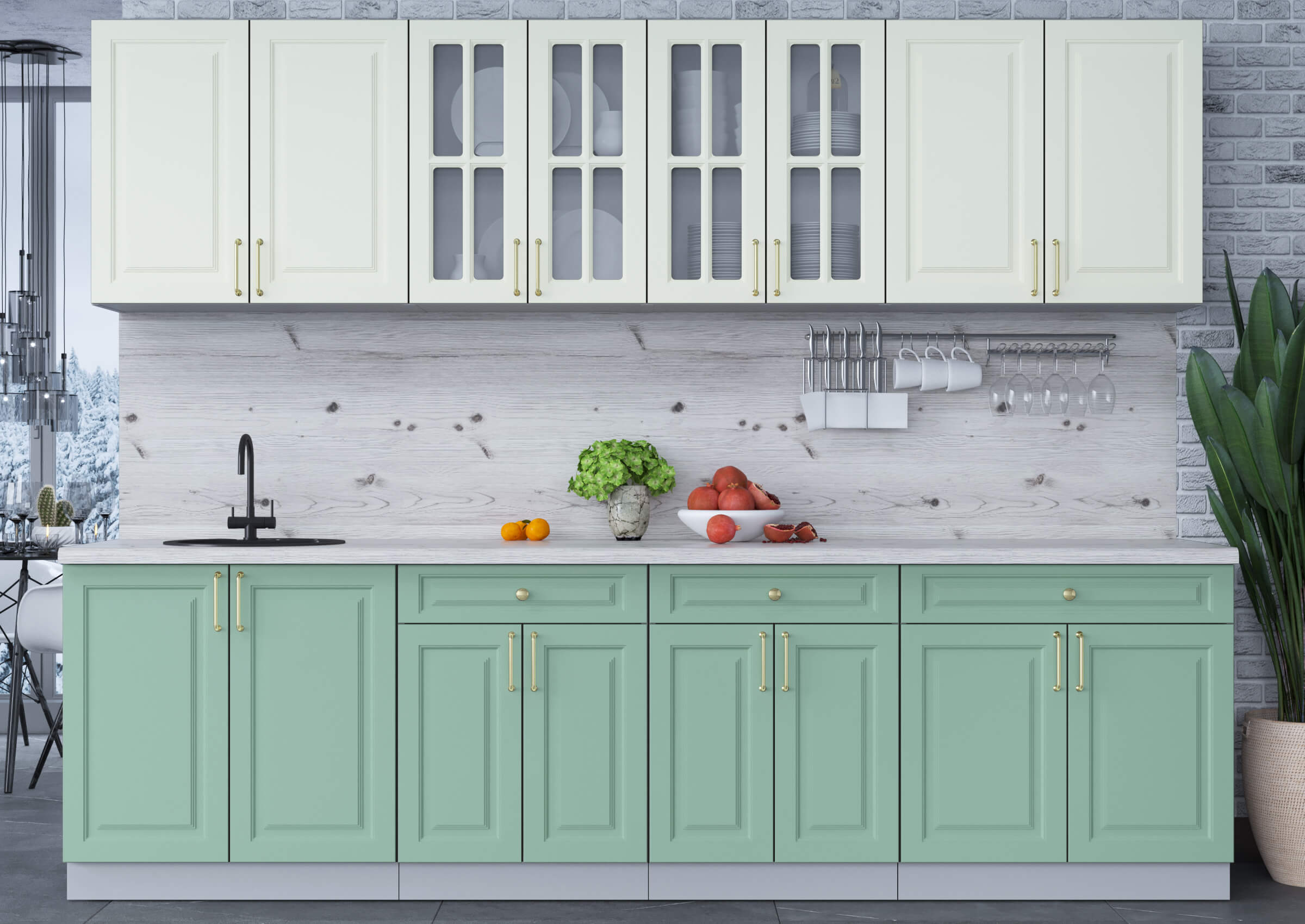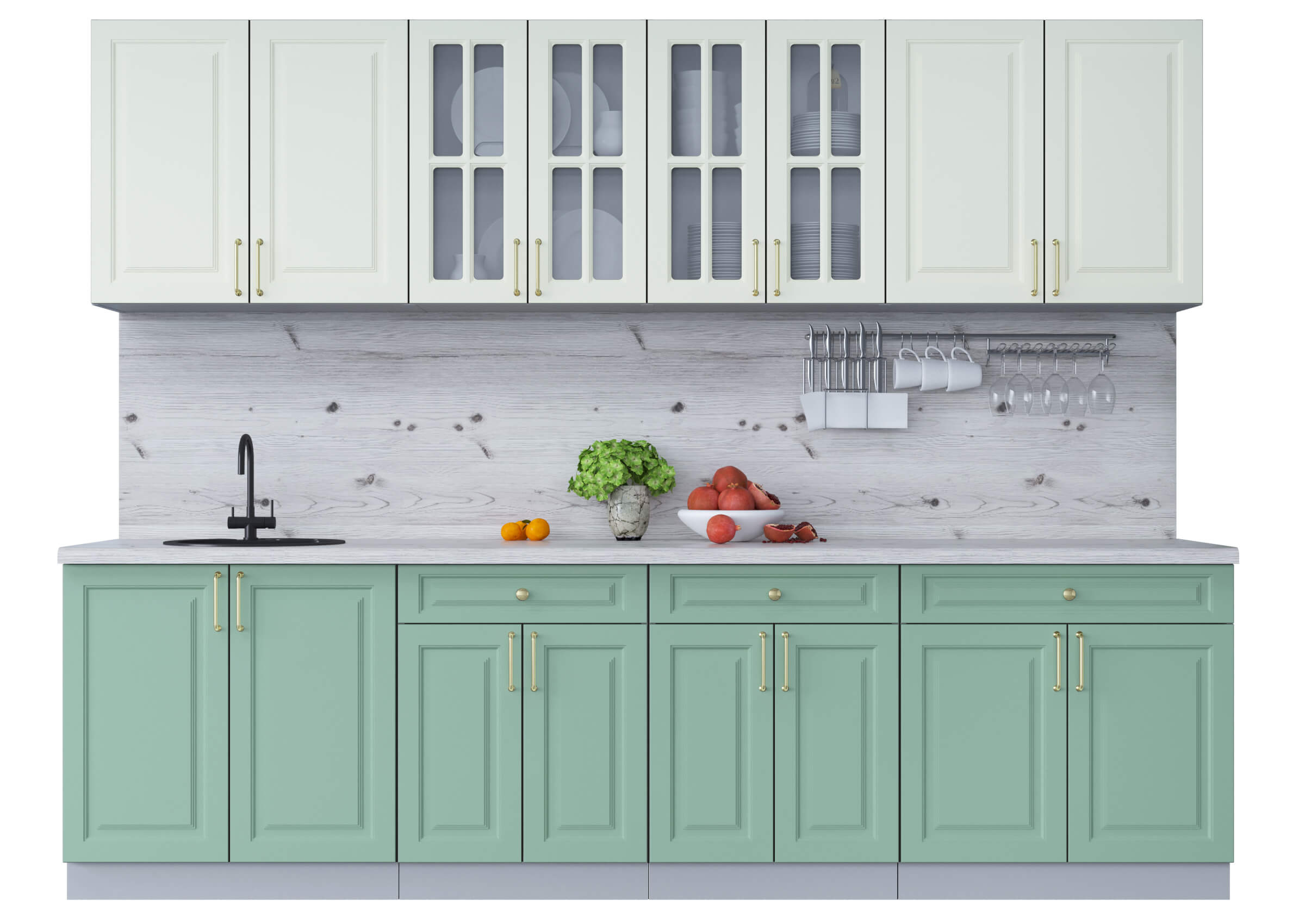 ГОТОВАЯ КУХНЯ ШАТО SOFT-TOUCH 2,8А (БЕЛЫЙ/ МЯТА) - Yuta.by
