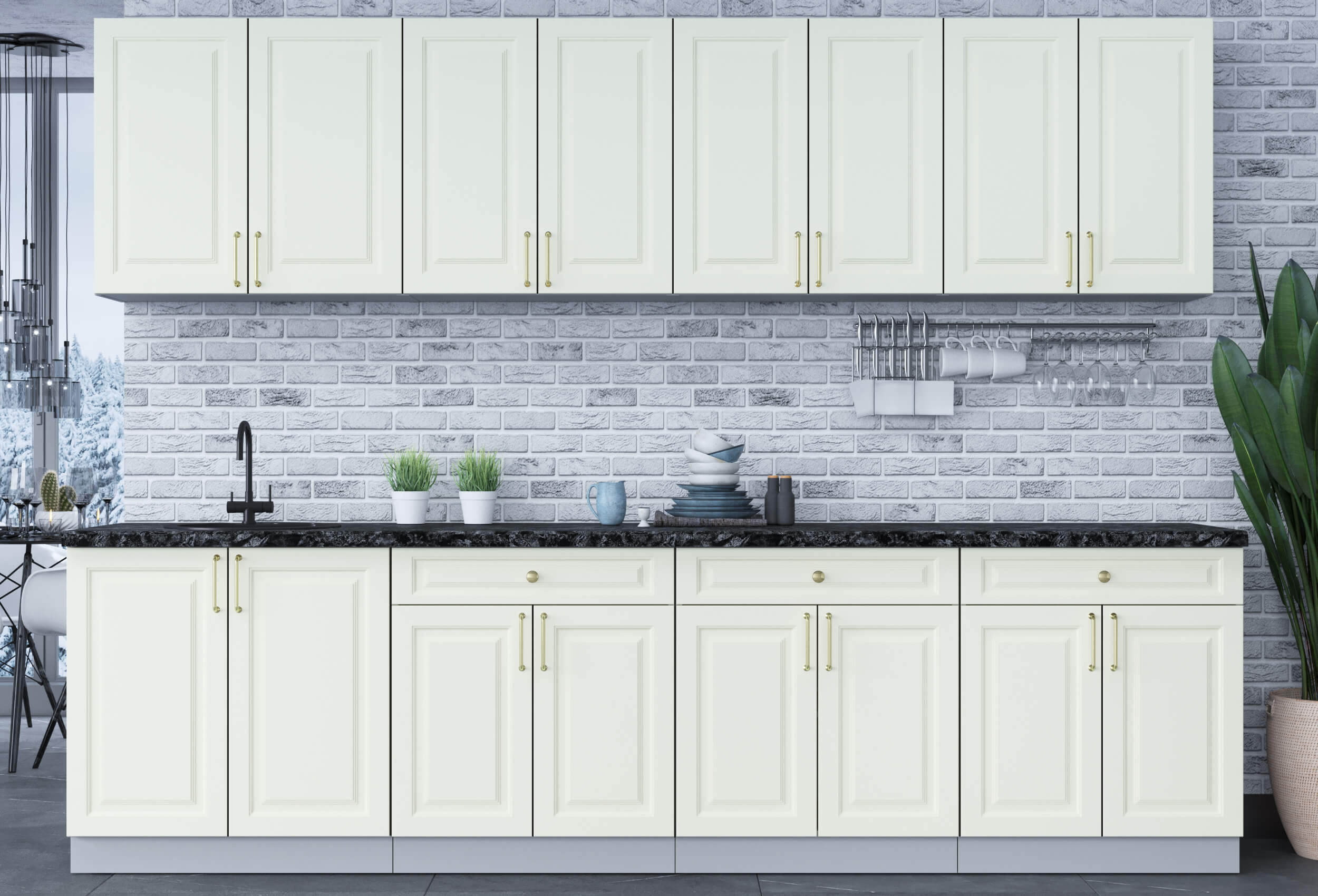 ШАТО отходит от строгих канонов и сохраняет способность гармонично сочетаться с различным декором, будь это винтажные часы, модерн-статуэтки или просто живые цветы. Выполненная в классическом американском стиле, ШАТО легко адаптируется к современным реалиям и хорошо сочетается с любой техникой, одновременно сохраняя лучшие тенденции элегантной мебели в духе домов из голливудских фильмов. Легкие черты многоступенчатых узоров на фасадах ШАТО подчеркивают изящные шпросы и золотистую фурнитуру.  ШАТО будет одинаково уместна в маленькой городской квартире и в просторном загородном доме.