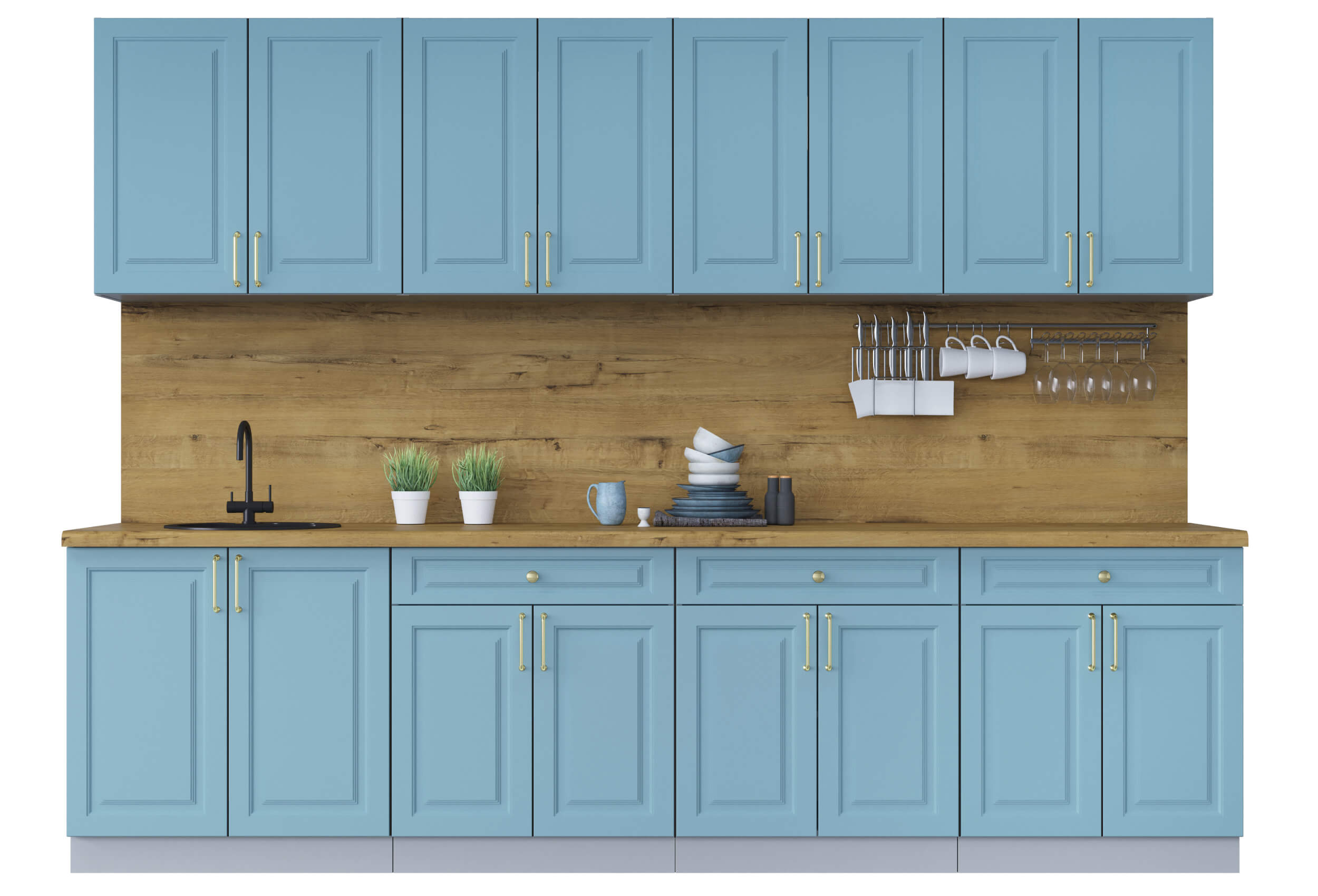 • Столешница (38 мм) отдельная на каждый шкаф или цельная (без увеличения стоимости);