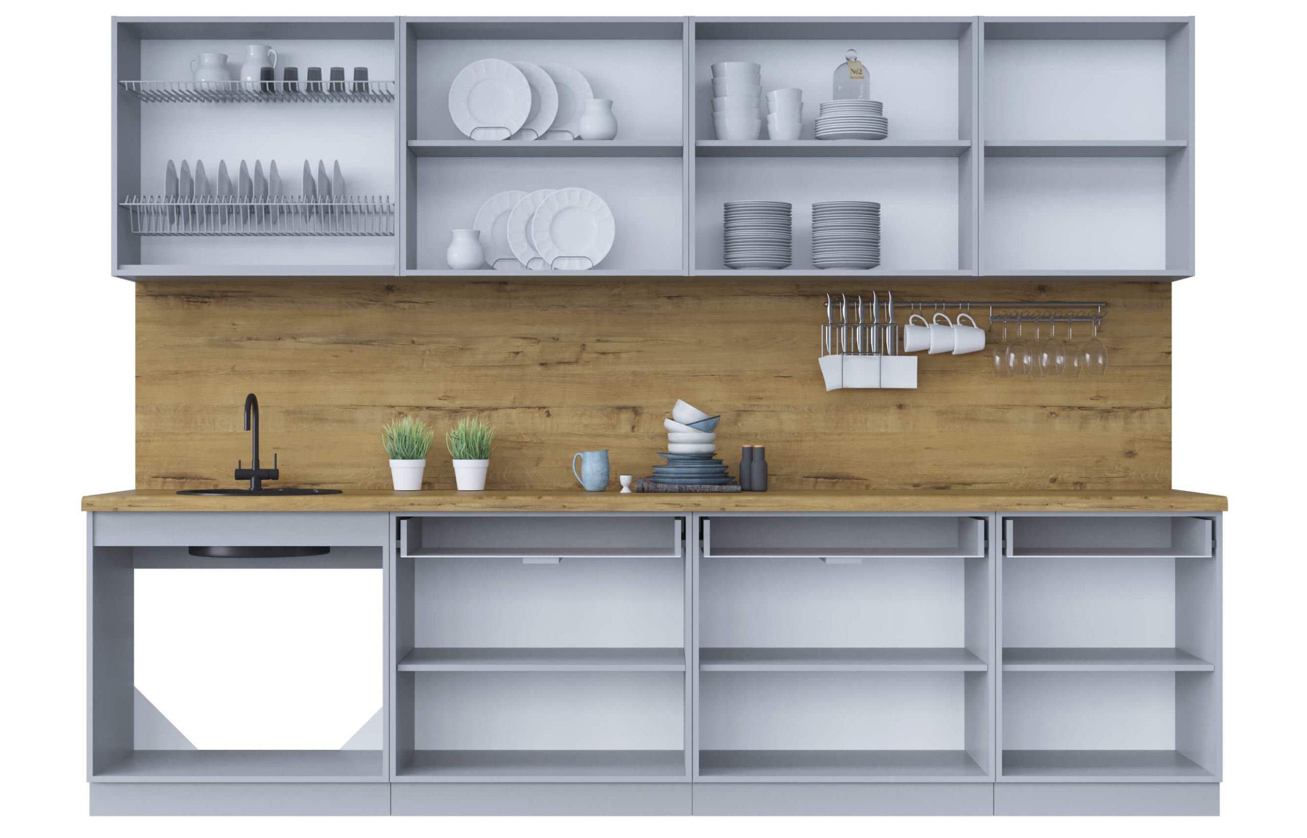 • Столешница (38 мм) отдельная на каждый шкаф или цельная (без увеличения стоимости);