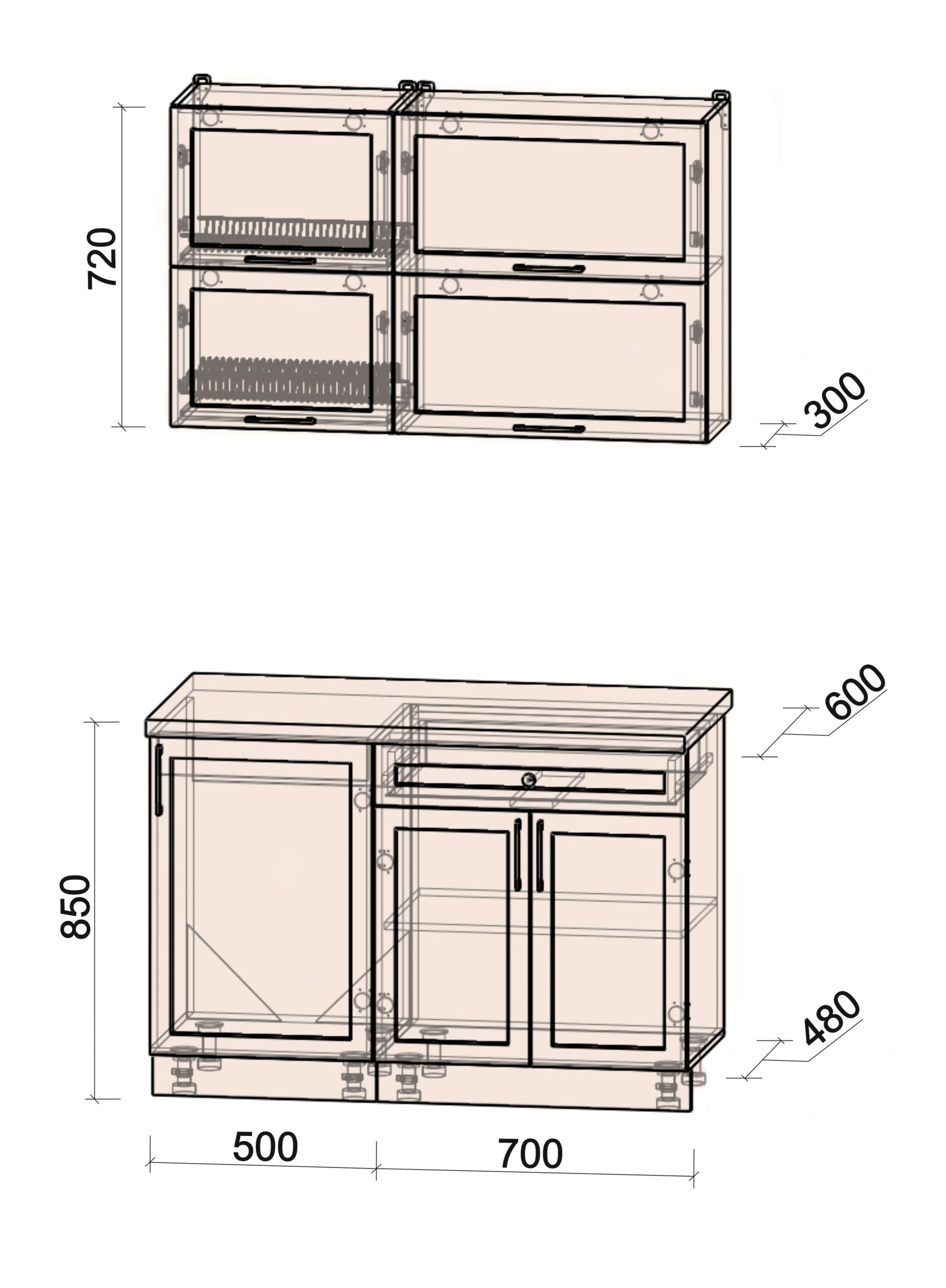 • шкаф нижний под духовой шкаф шириной 600 мм;
