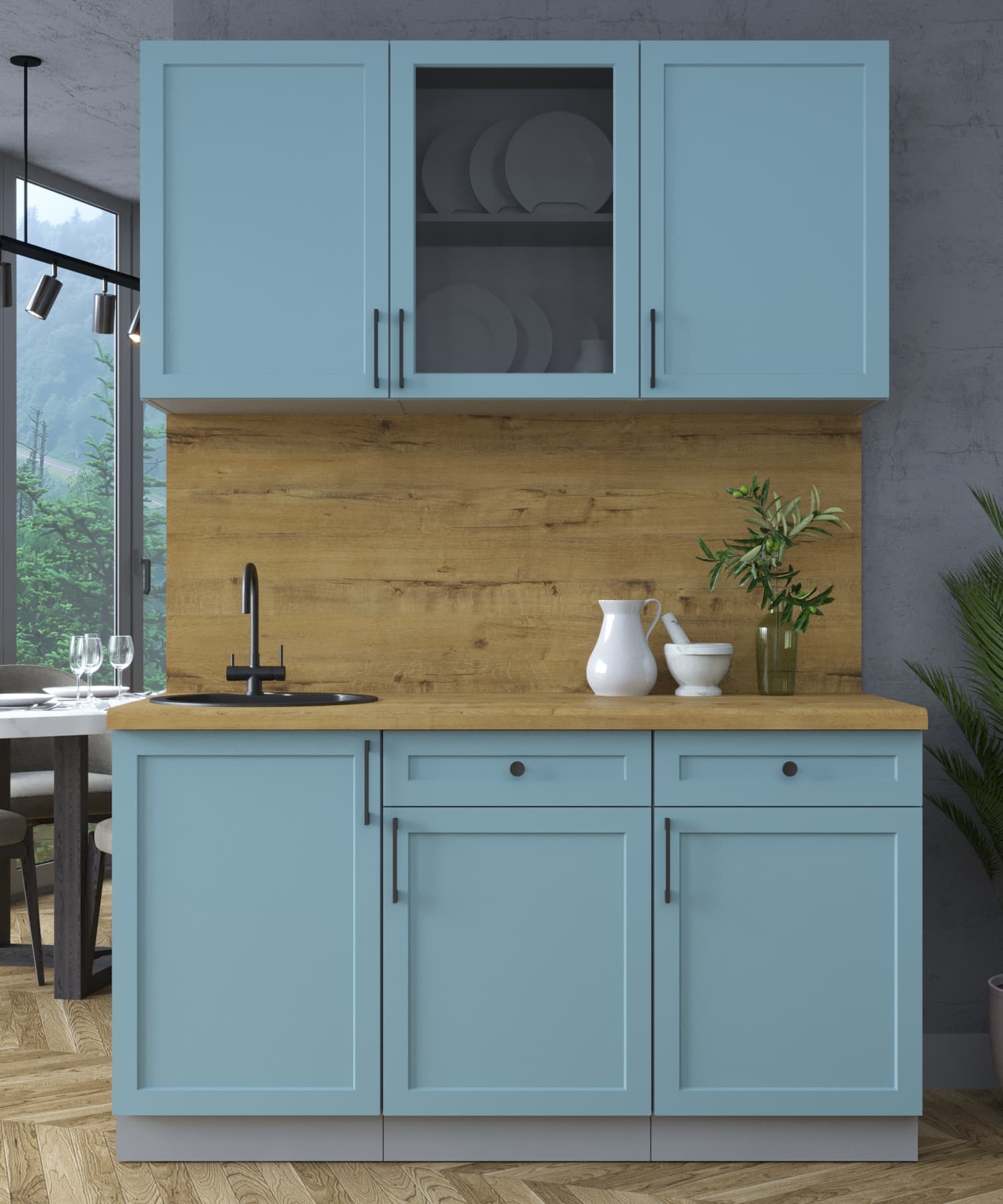 ГОТОВАЯ КУХНЯ ТРЕНД SOFT-TOUCH 1,5А (ОКЕАН/ ОКЕАН) - Yuta.by