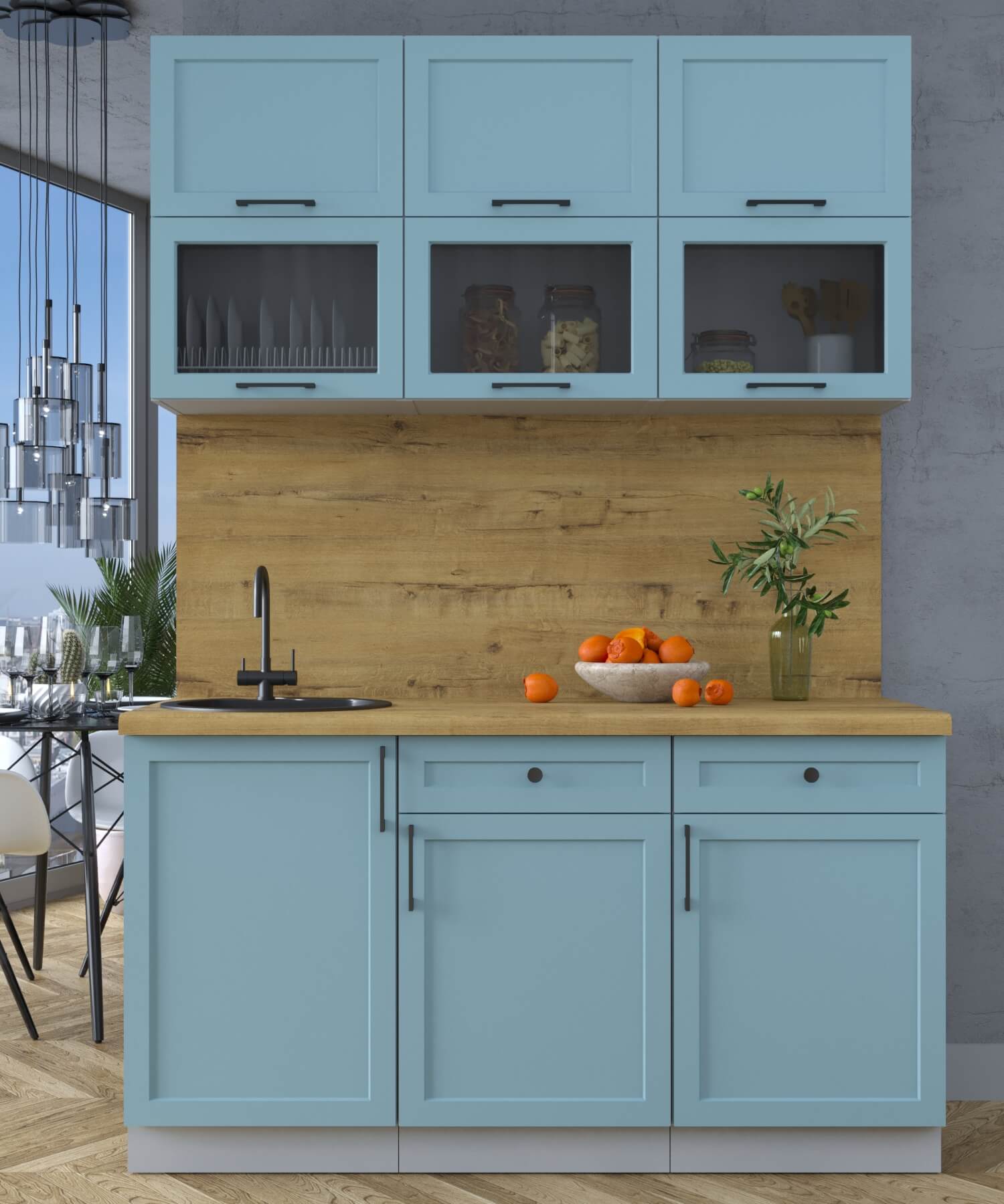ГОТОВАЯ КУХНЯ ТРЕНД SOFT-TOUCH 1,5Б (ОКЕАН/ ОКЕАН) - Yuta.by
