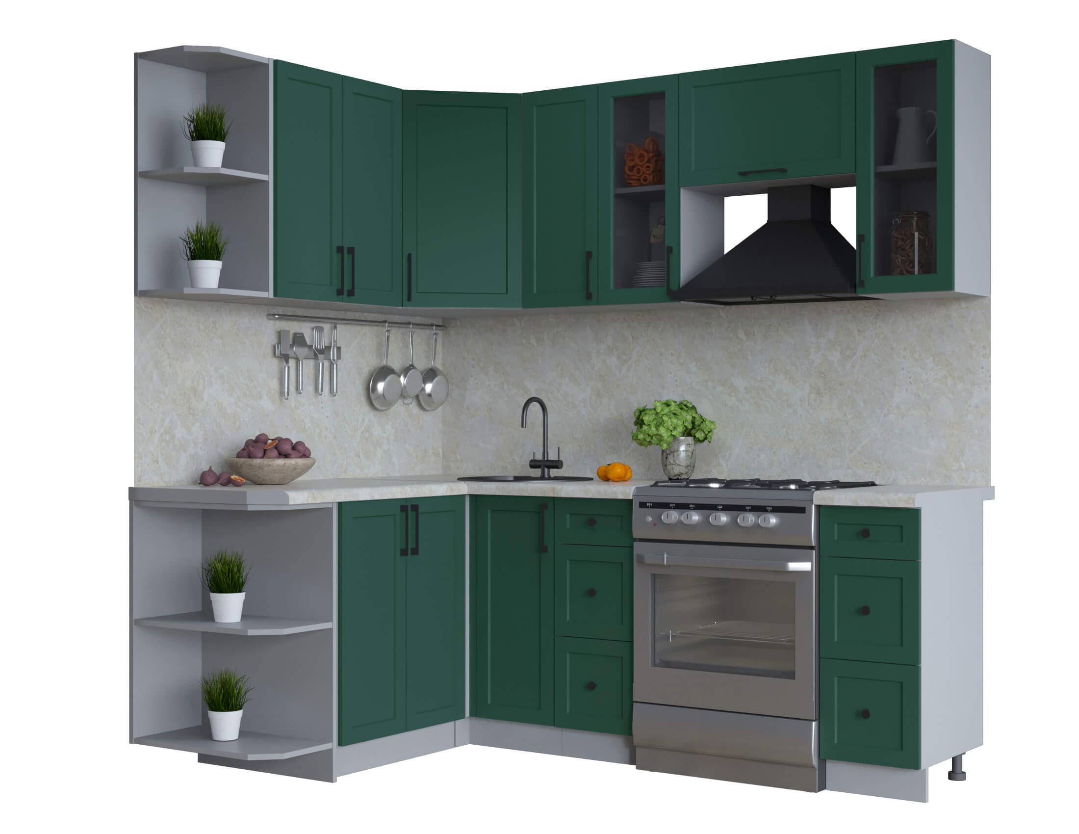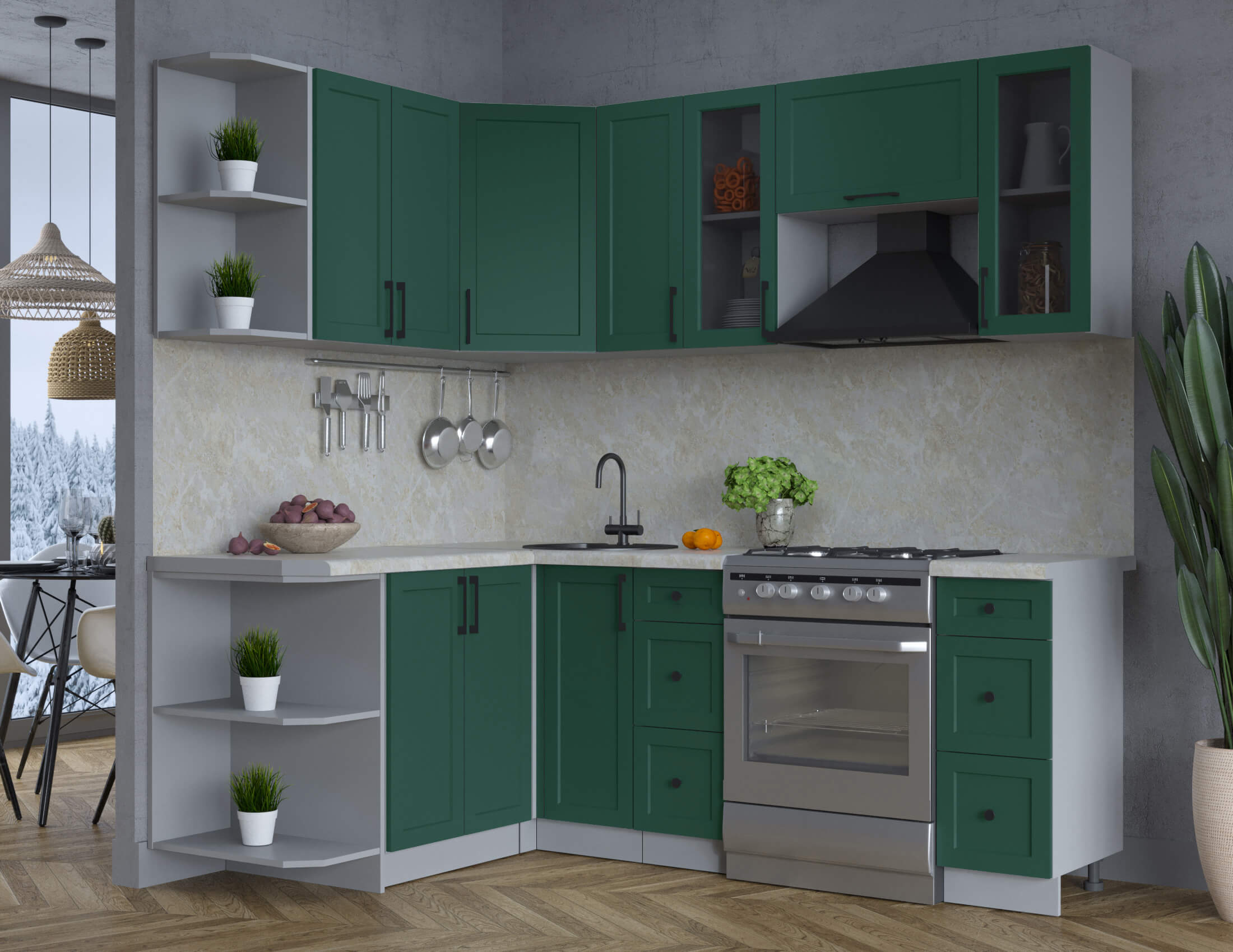 ГОТОВАЯ КУХНЯ ТРЕНД SOFT-TOUCH 1,5Х2,1 (ИЗУМРУД/ ИЗУМРУД) - Yuta.by