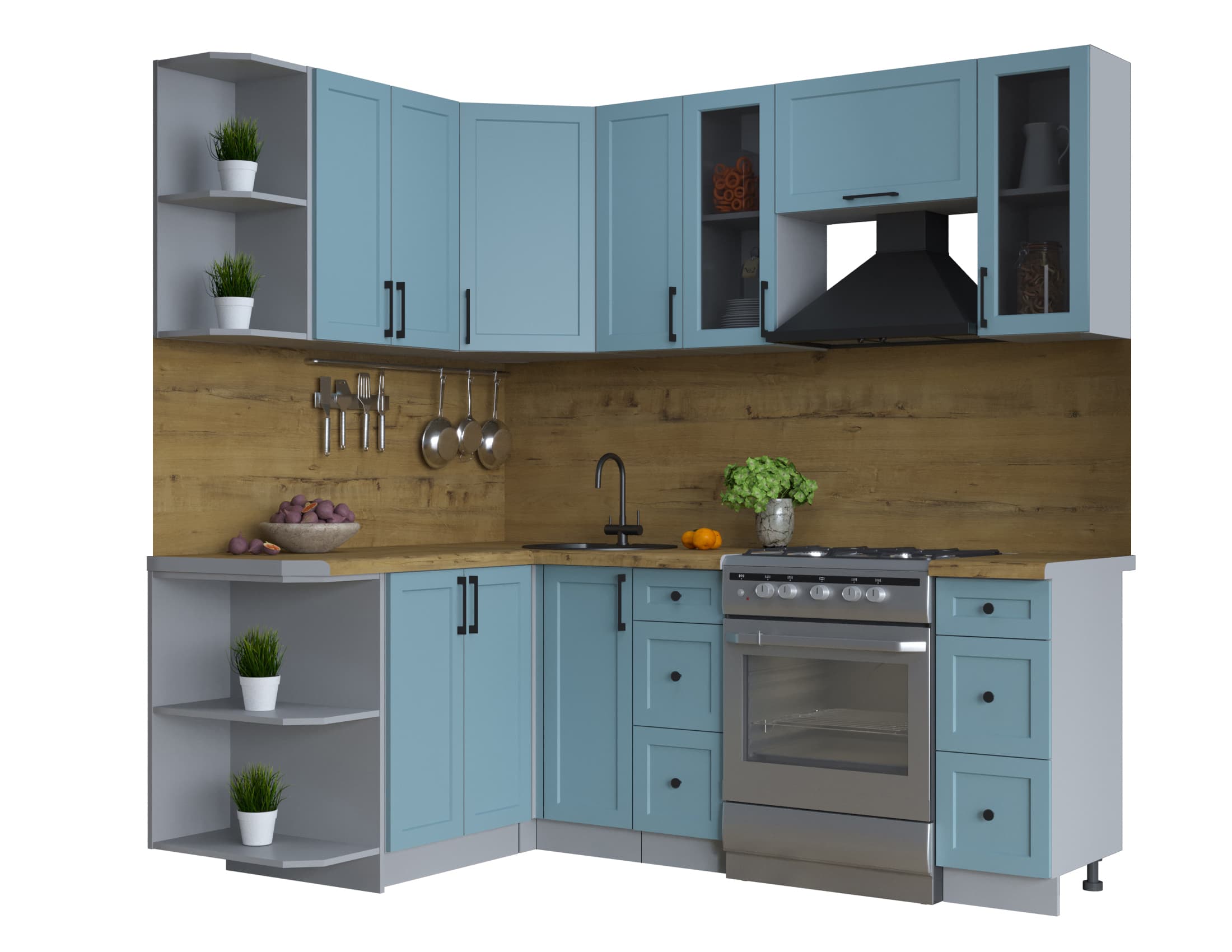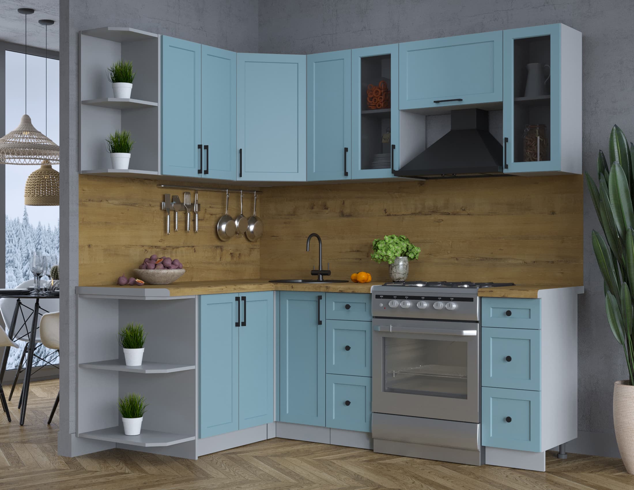 ГОТОВАЯ КУХНЯ ТРЕНД SOFT-TOUCH 1,5Х2,1 (ОКЕАН/ ОКЕАН) - Yuta.by