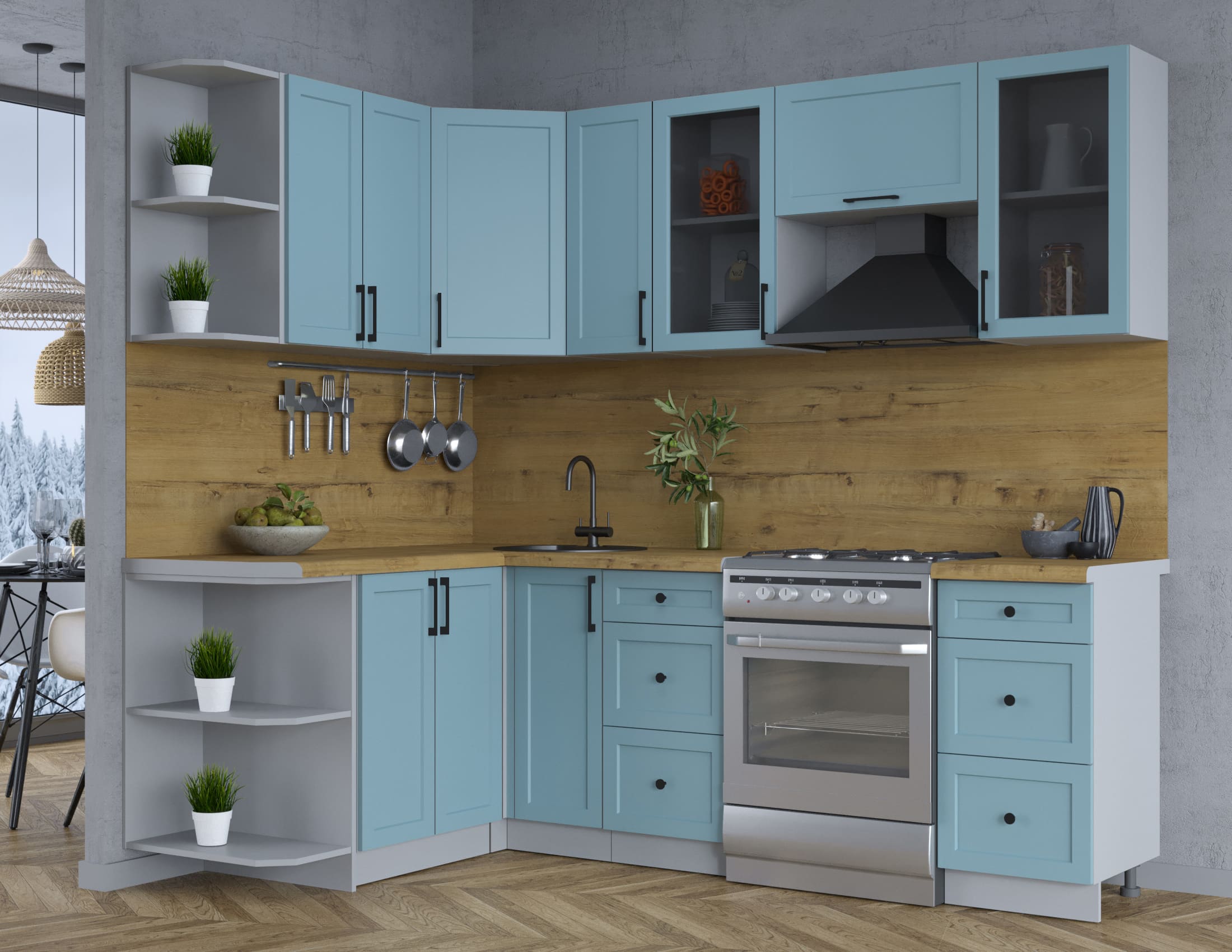 ГОТОВАЯ КУХНЯ ТРЕНД SOFT-TOUCH 1,5Х2,3 (ОКЕАН/ ОКЕАН) - Yuta.by
