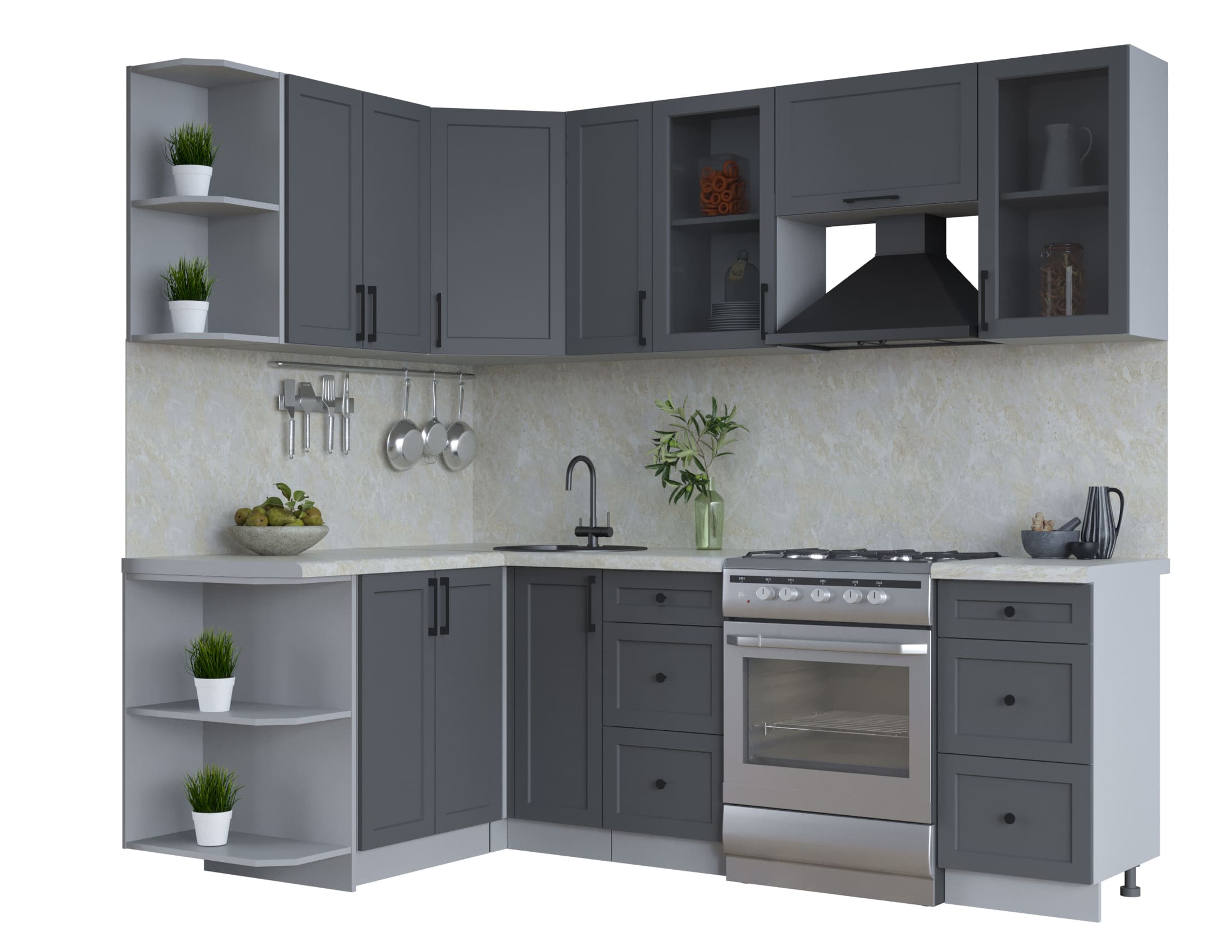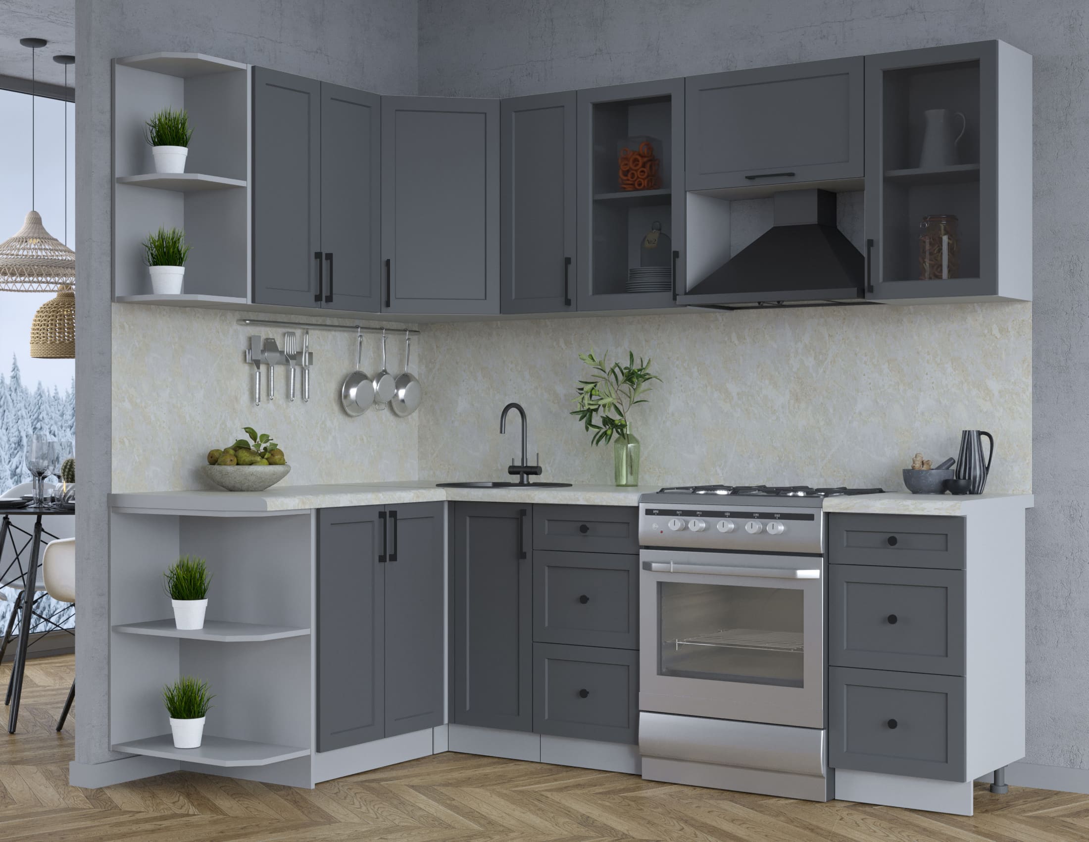 ГОТОВАЯ КУХНЯ ТРЕНД SOFT-TOUCH 1,5Х2,3 (ПЕПЕЛ/ ПЕПЕЛ) - Yuta.by