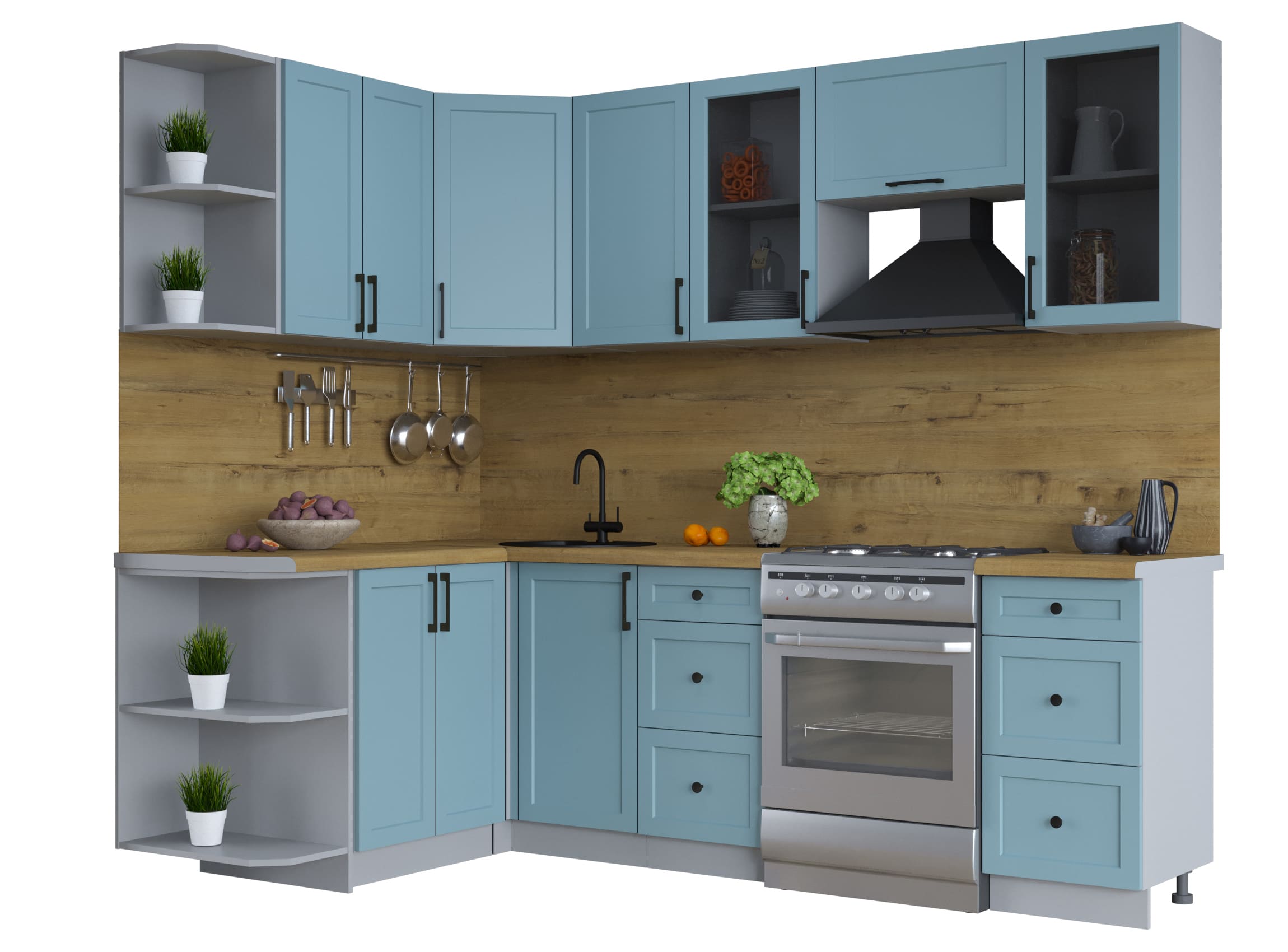 ГОТОВАЯ КУХНЯ ТРЕНД SOFT-TOUCH 1,5Х2,4 (ОКЕАН/ ОКЕАН) - Yuta.by