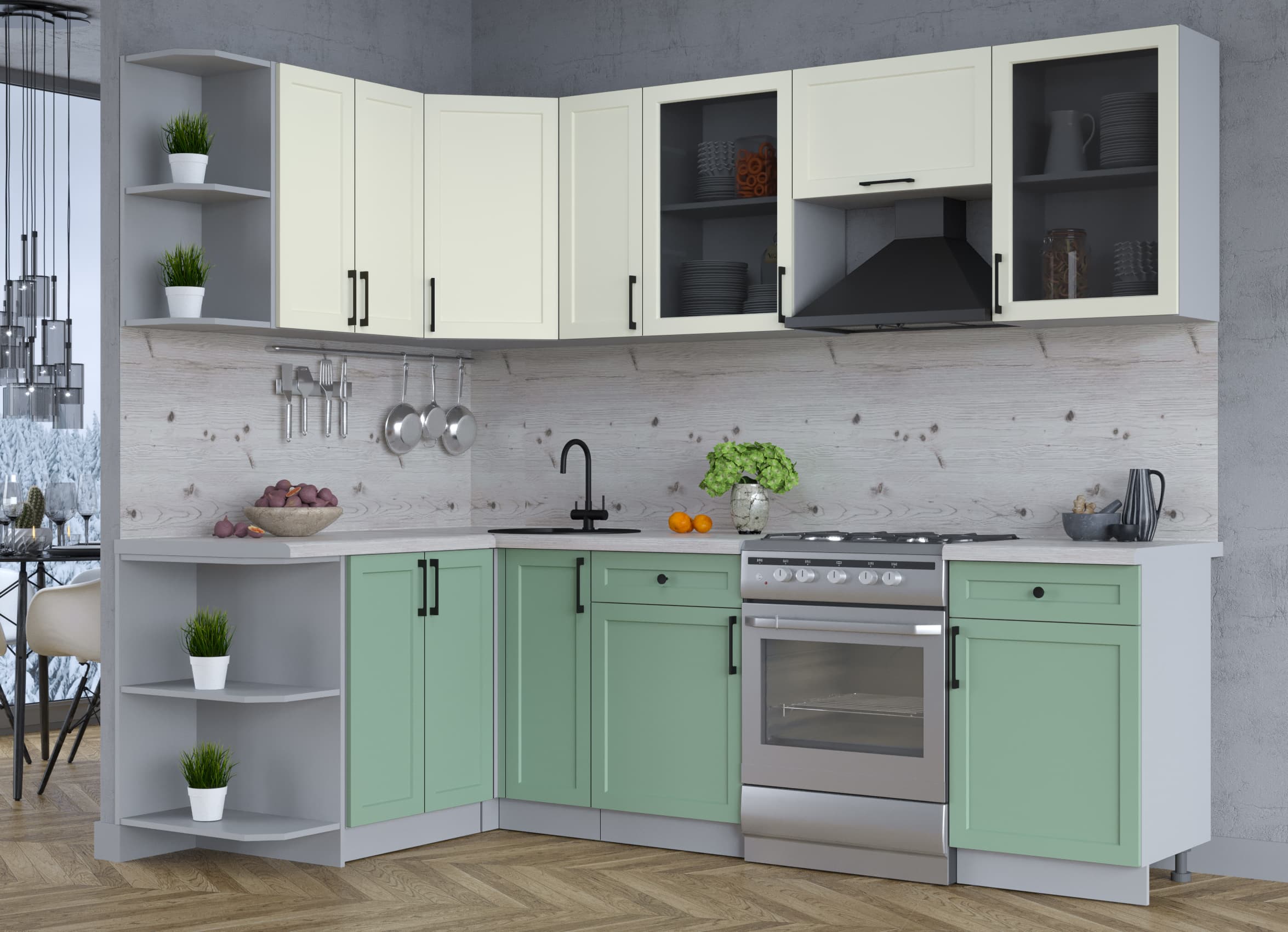 ГОТОВАЯ КУХНЯ ТРЕНД SOFT-TOUCH 1,5Х2,5 (БЕЛЫЙ/ МЯТА) - Yuta.by