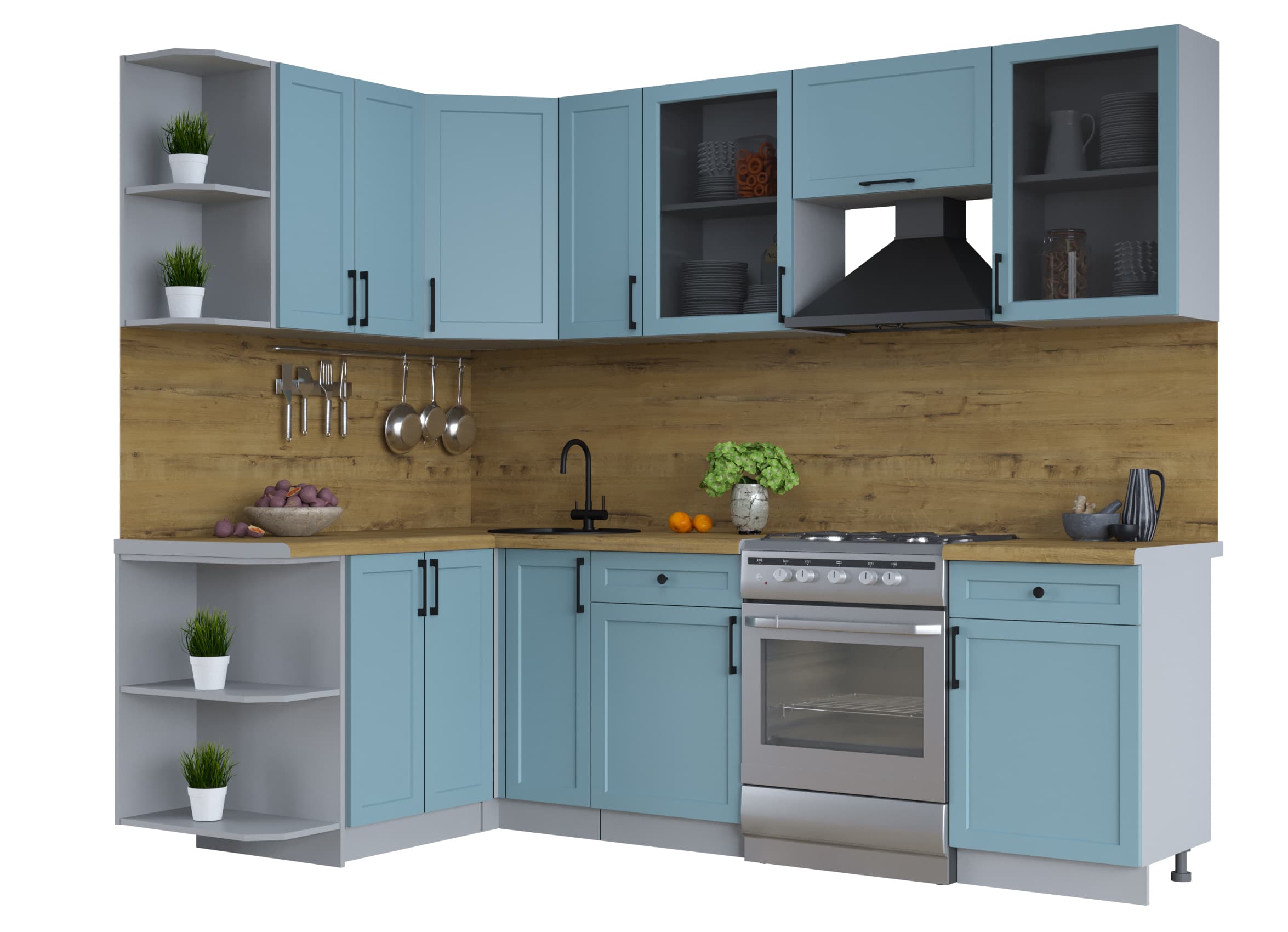 ГОТОВАЯ КУХНЯ ТРЕНД SOFT-TOUCH 1,5Х2,5 (ОКЕАН/ ОКЕАН) - Yuta.by