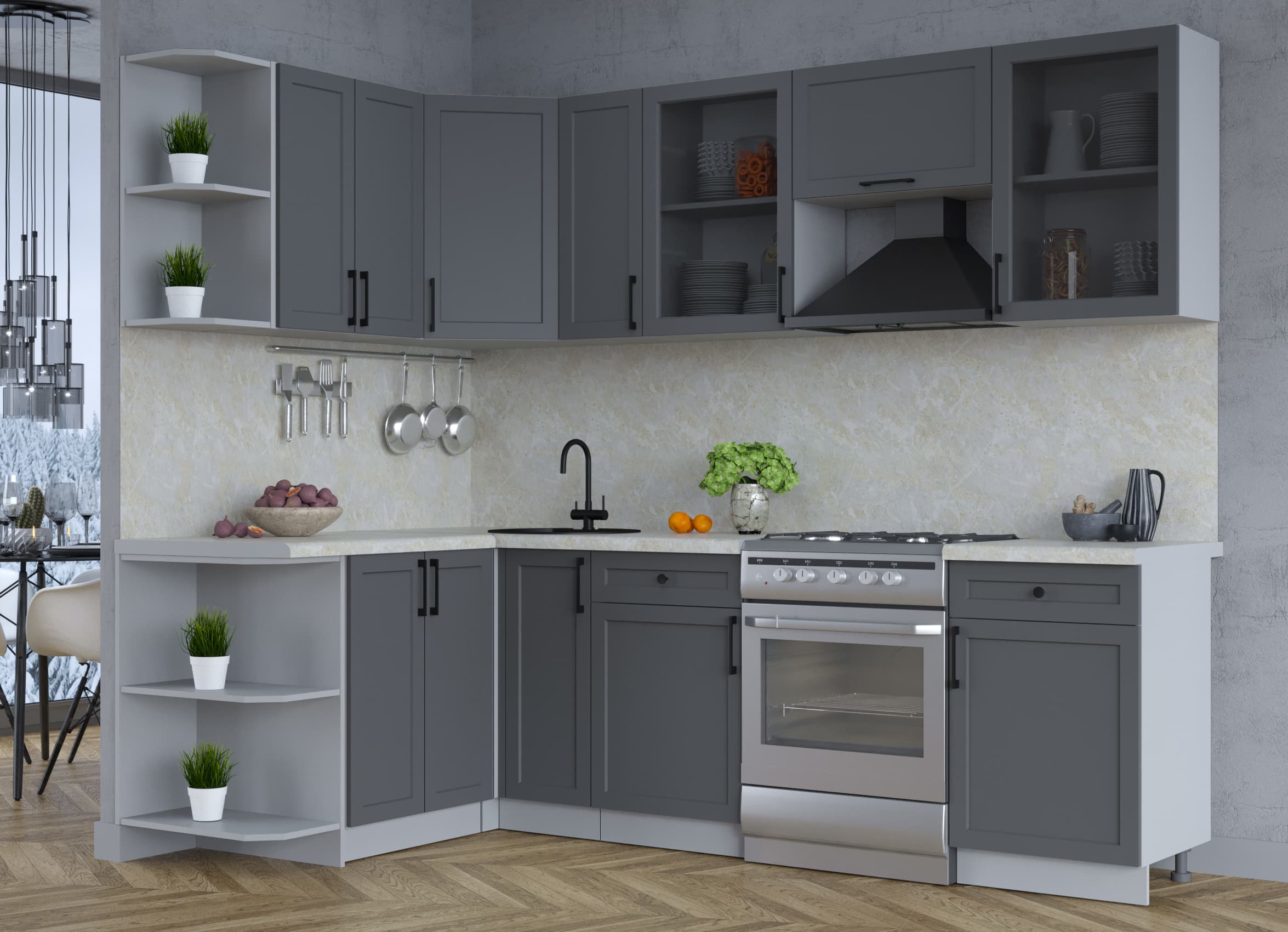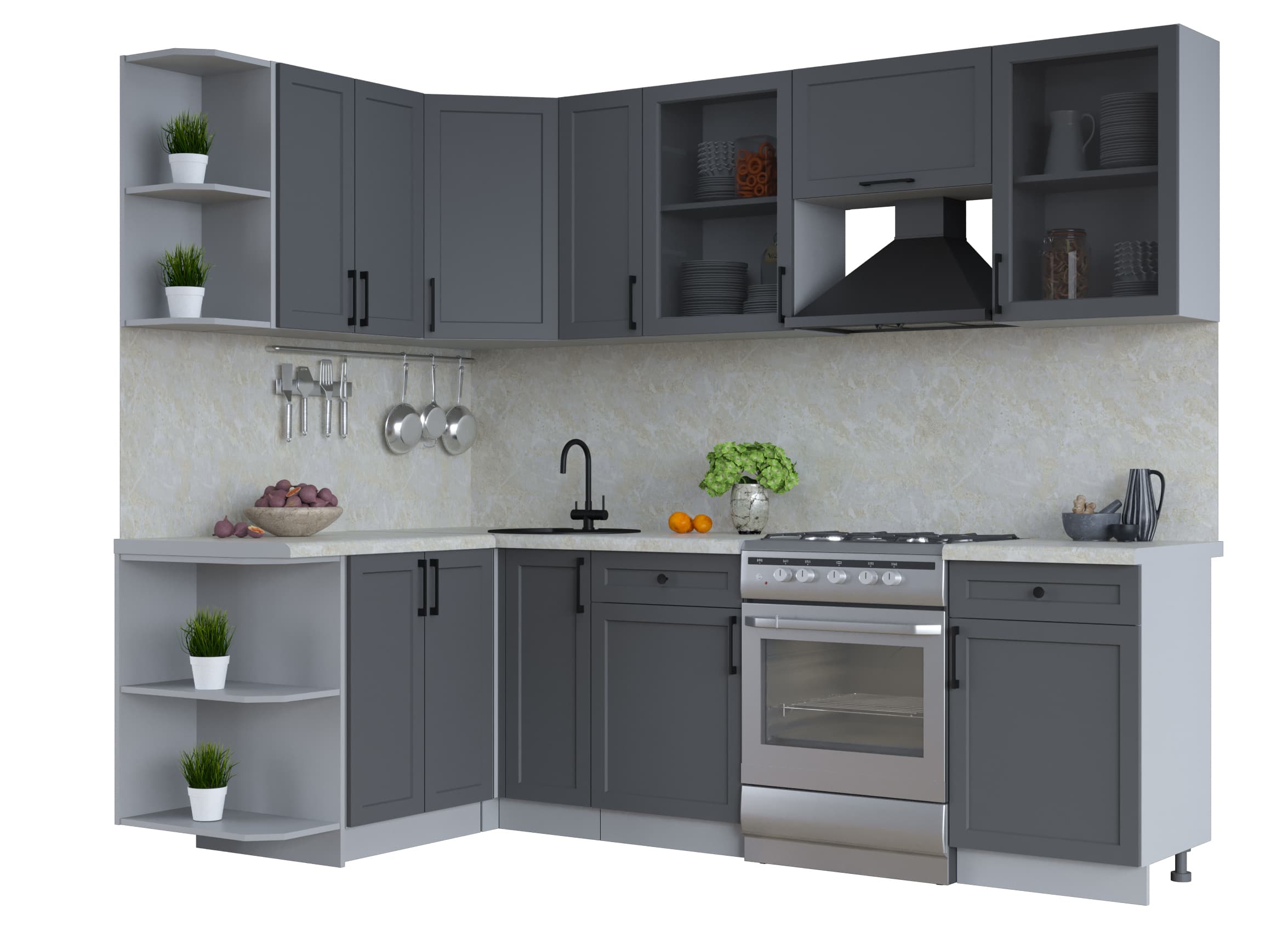 ГОТОВАЯ КУХНЯ ТРЕНД SOFT-TOUCH 1,5Х2,5 (ПЕПЕЛ/ ПЕПЕЛ) - Yuta.by