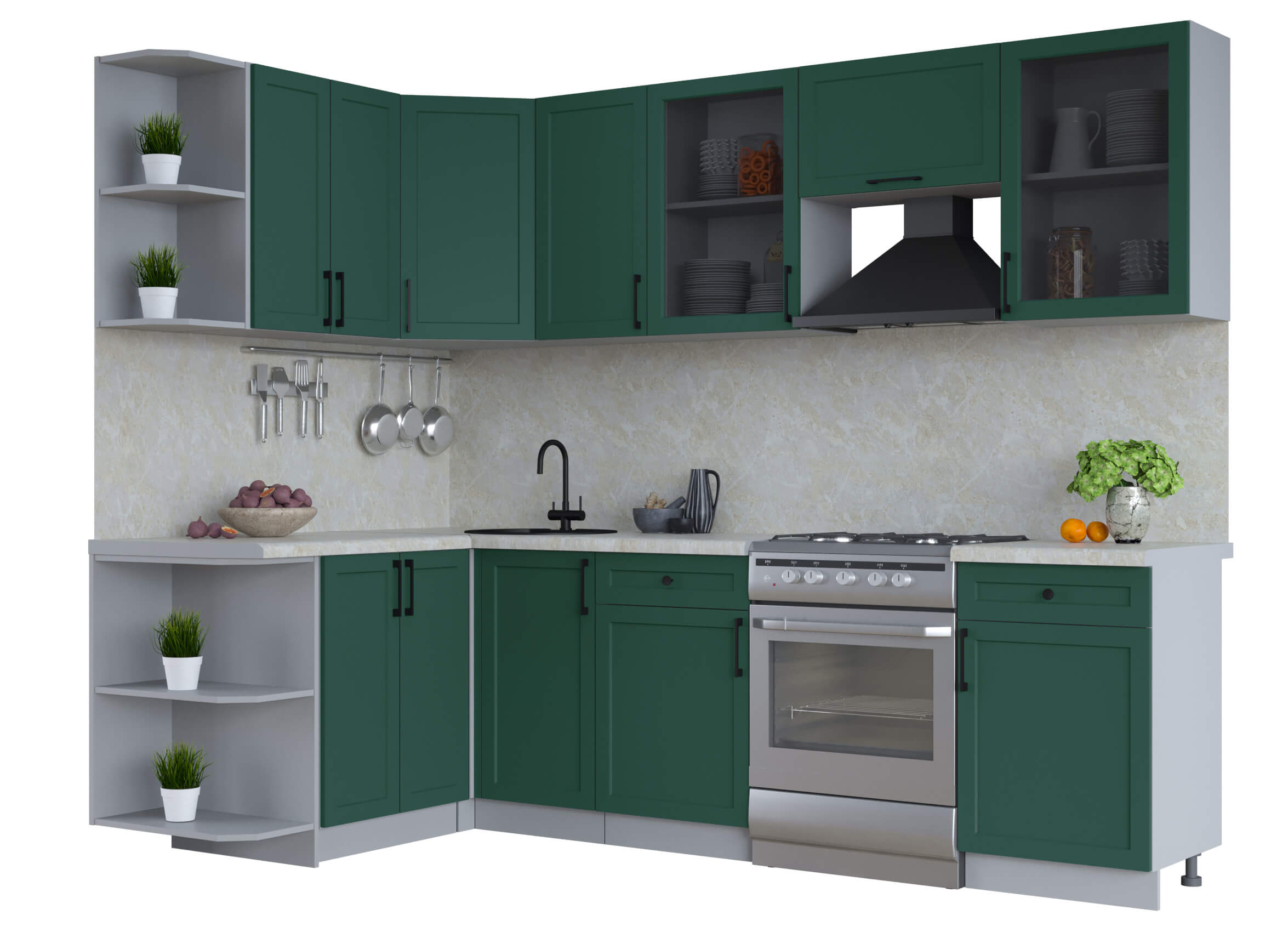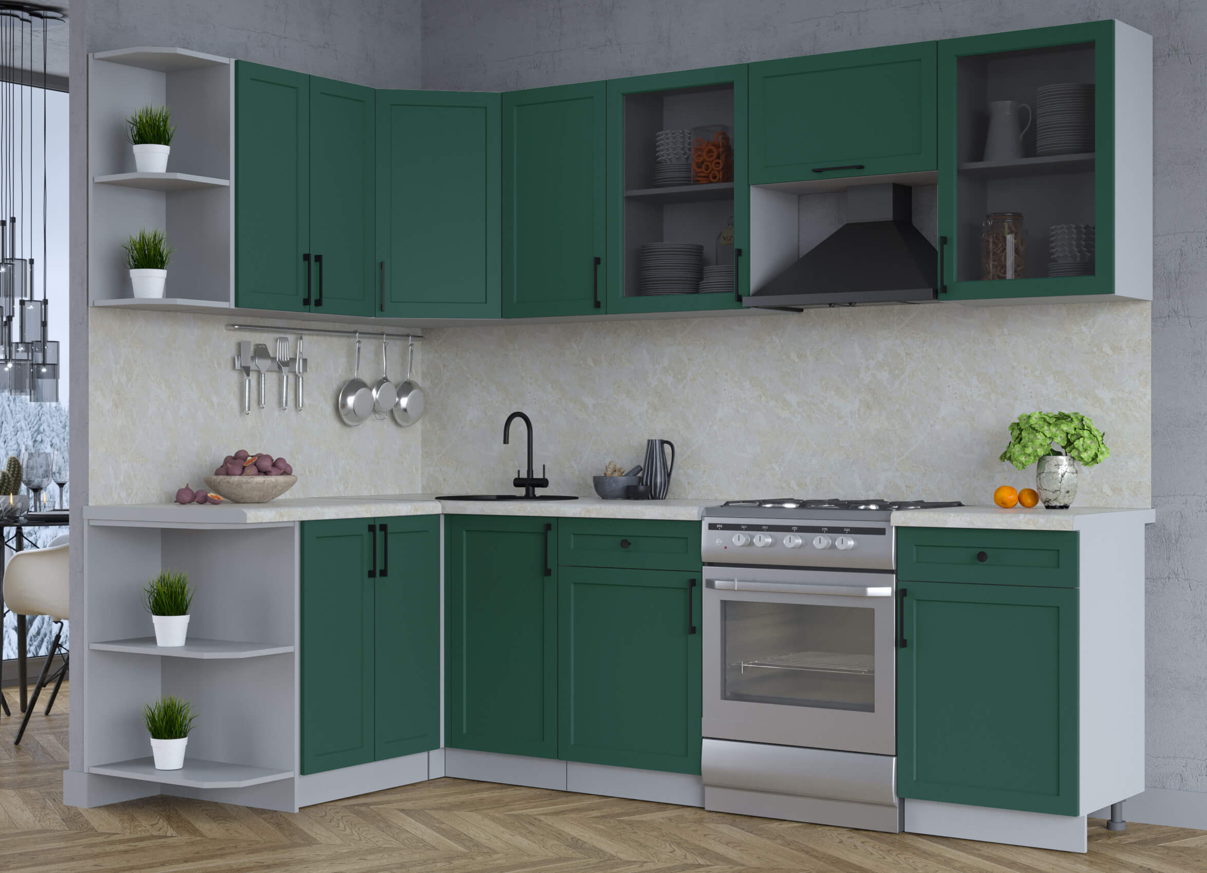 ГОТОВАЯ КУХНЯ ТРЕНД SOFT-TOUCH 1,5Х2,6 (ИЗУМРУД/ ИЗУМРУД) - Yuta.by