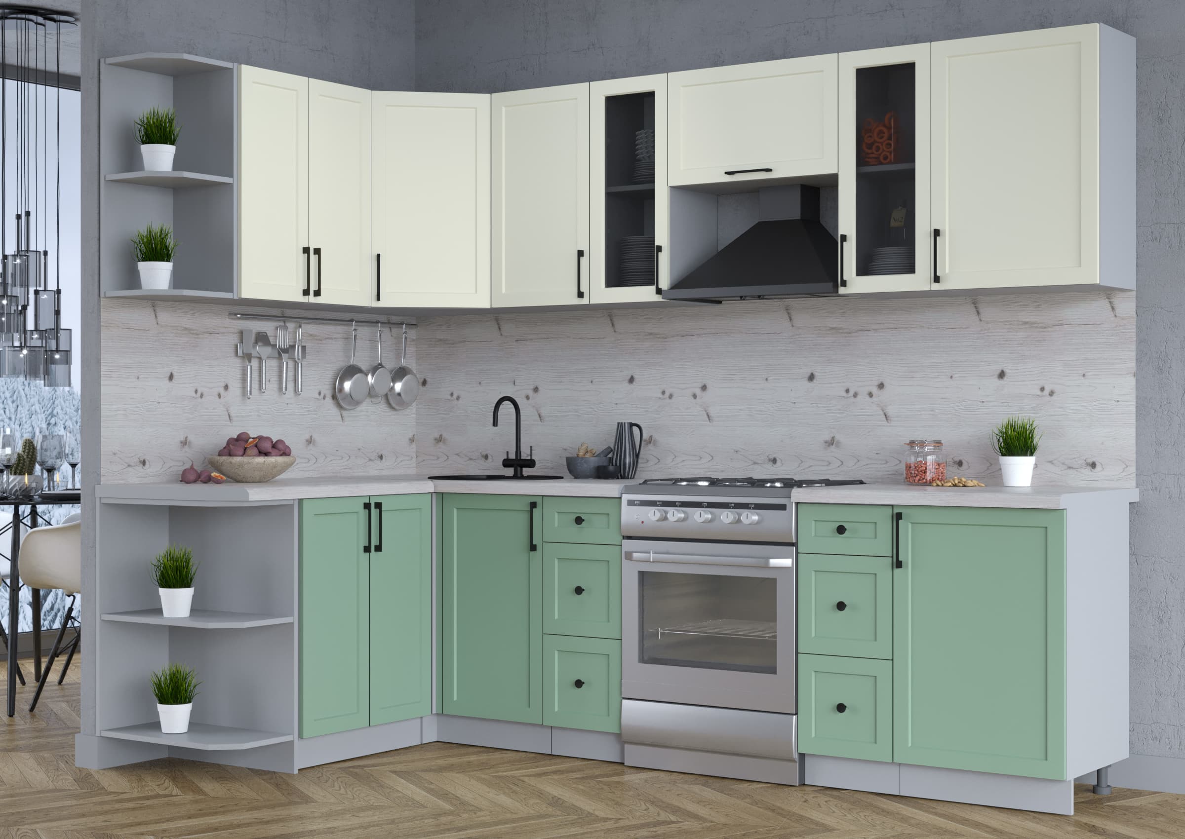 ГОТОВАЯ КУХНЯ ТРЕНД SOFT-TOUCH 1,5Х2,7 (БЕЛЫЙ/ МЯТА) - Yuta.by