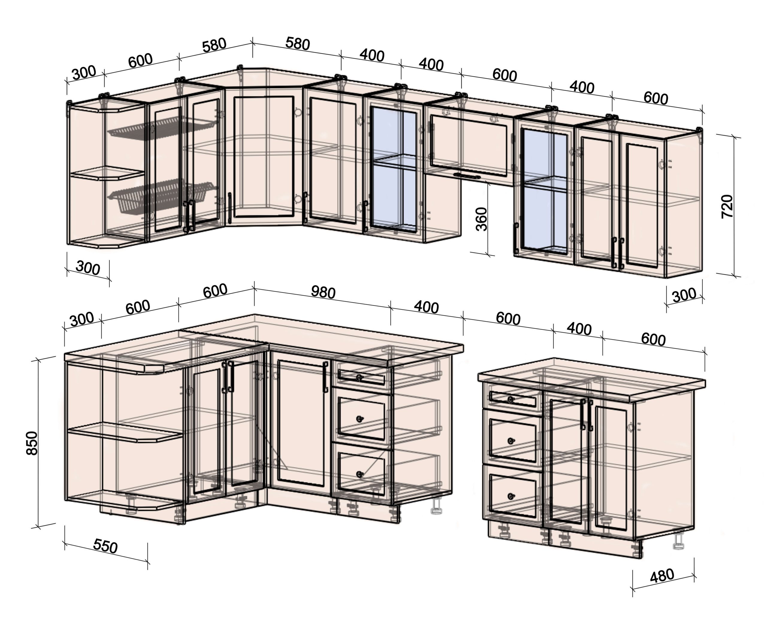 • шкаф нижний под духовой шкаф шириной 600 мм;