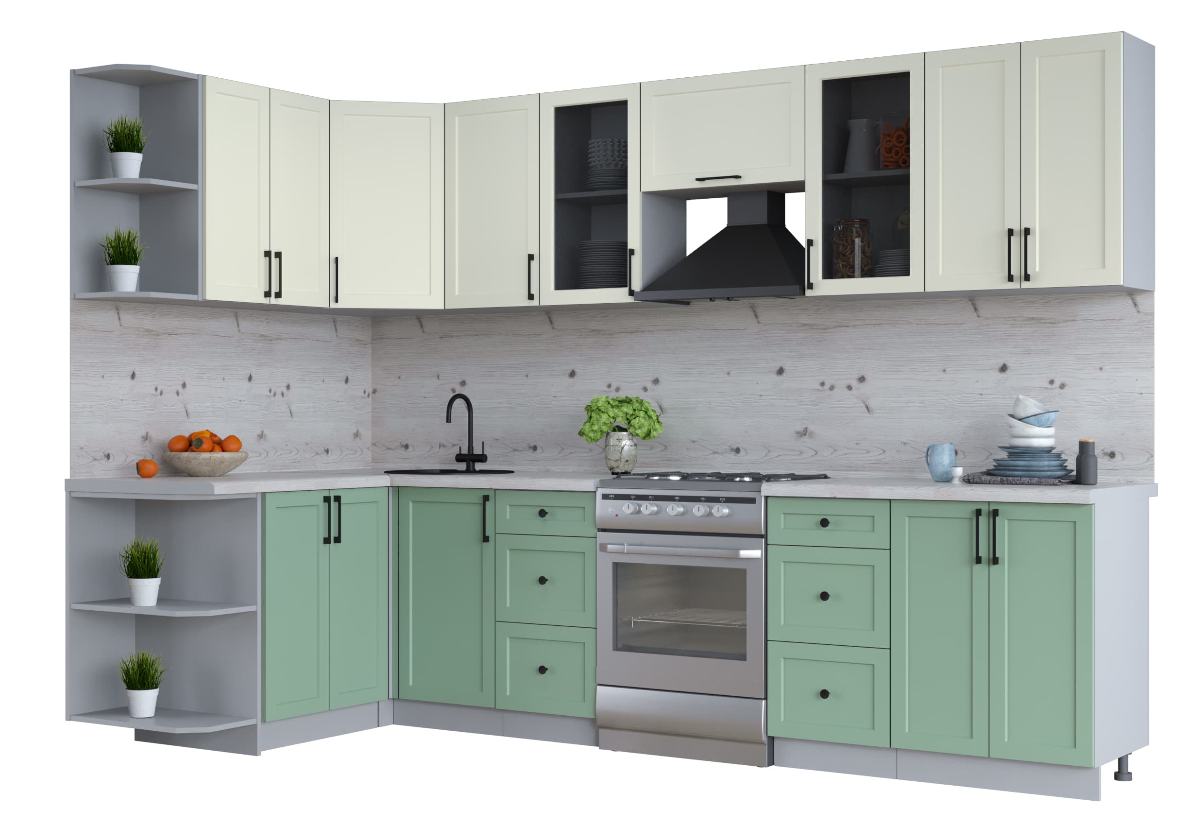 ГОТОВАЯ КУХНЯ ТРЕНД SOFT-TOUCH 1,5Х3,0 (БЕЛЫЙ/ МЯТА) - Yuta.by