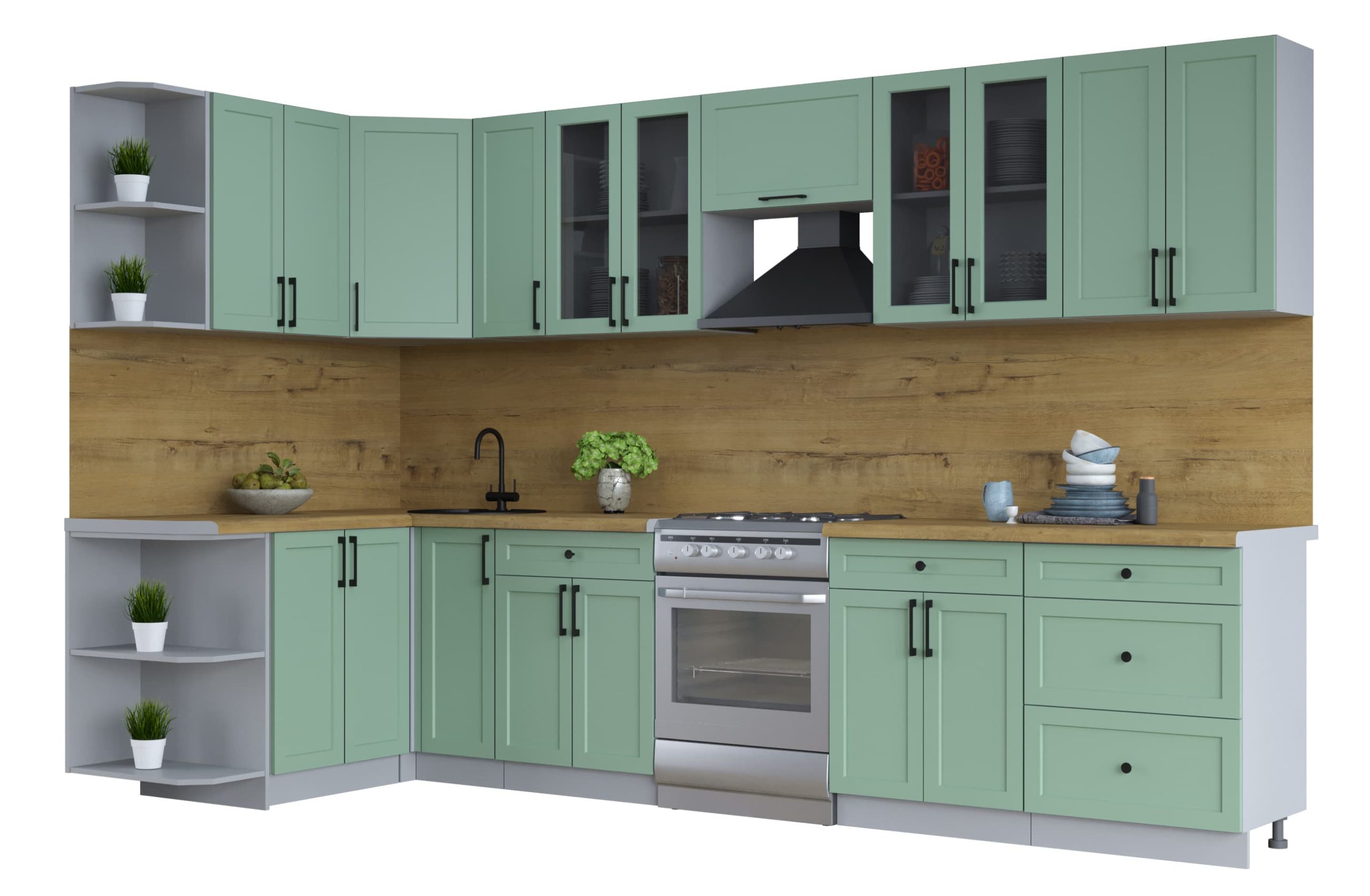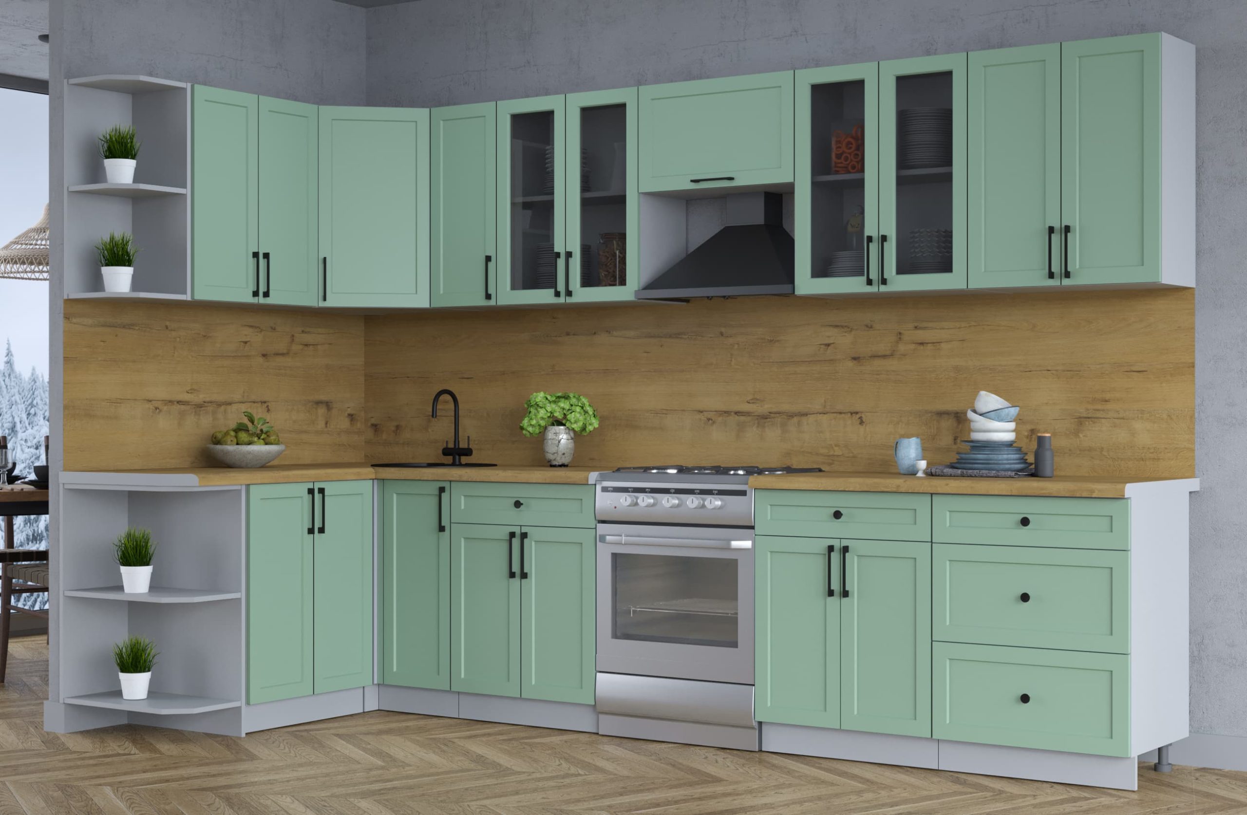 ГОТОВАЯ КУХНЯ ТРЕНД SOFT-TOUCH 1,5Х3,3 (МЯТА/ МЯТА) - Yuta.by