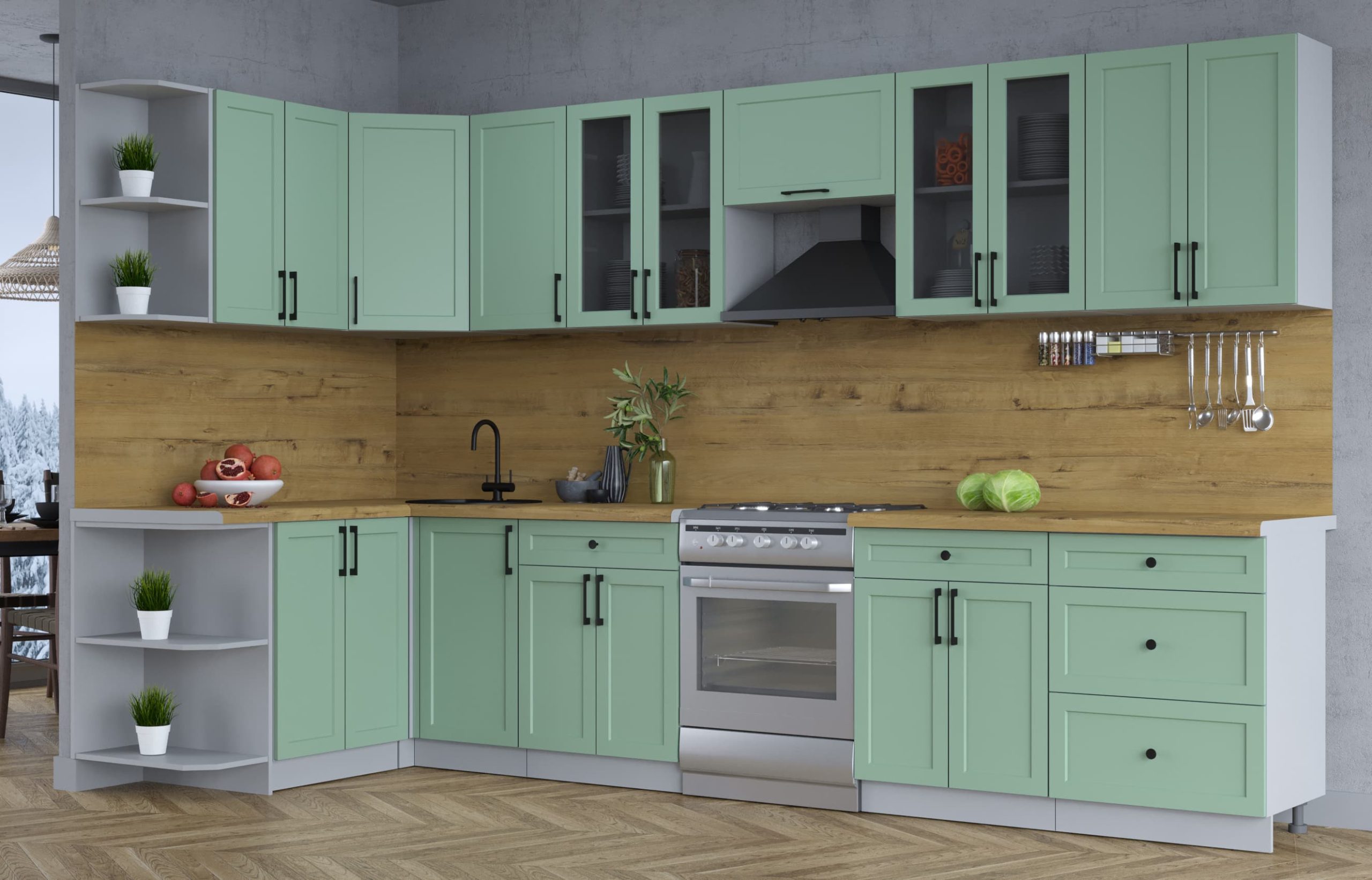 ГОТОВАЯ КУХНЯ ТРЕНД SOFT-TOUCH 1,5Х3,4 (МЯТА/ МЯТА) - Yuta.by