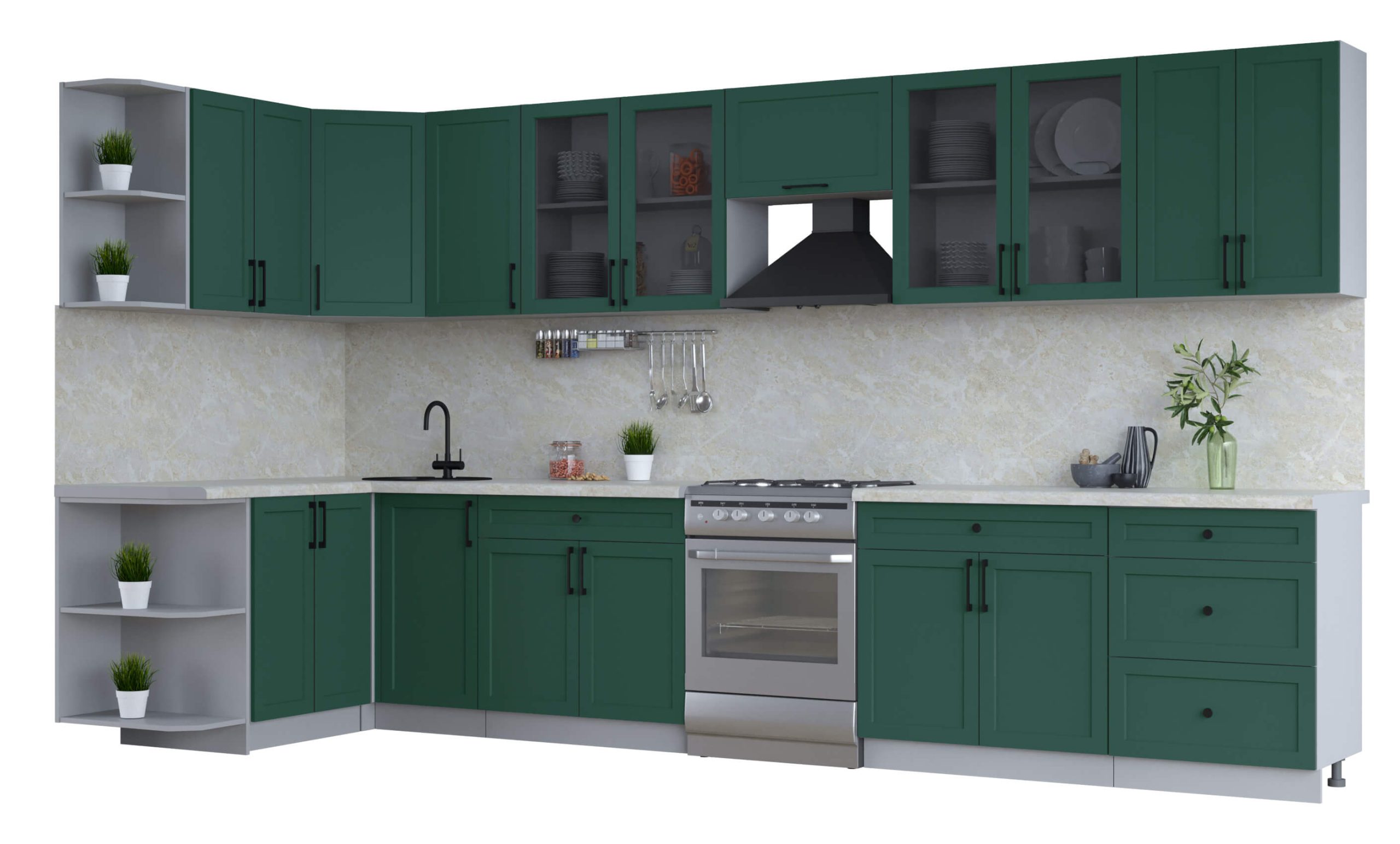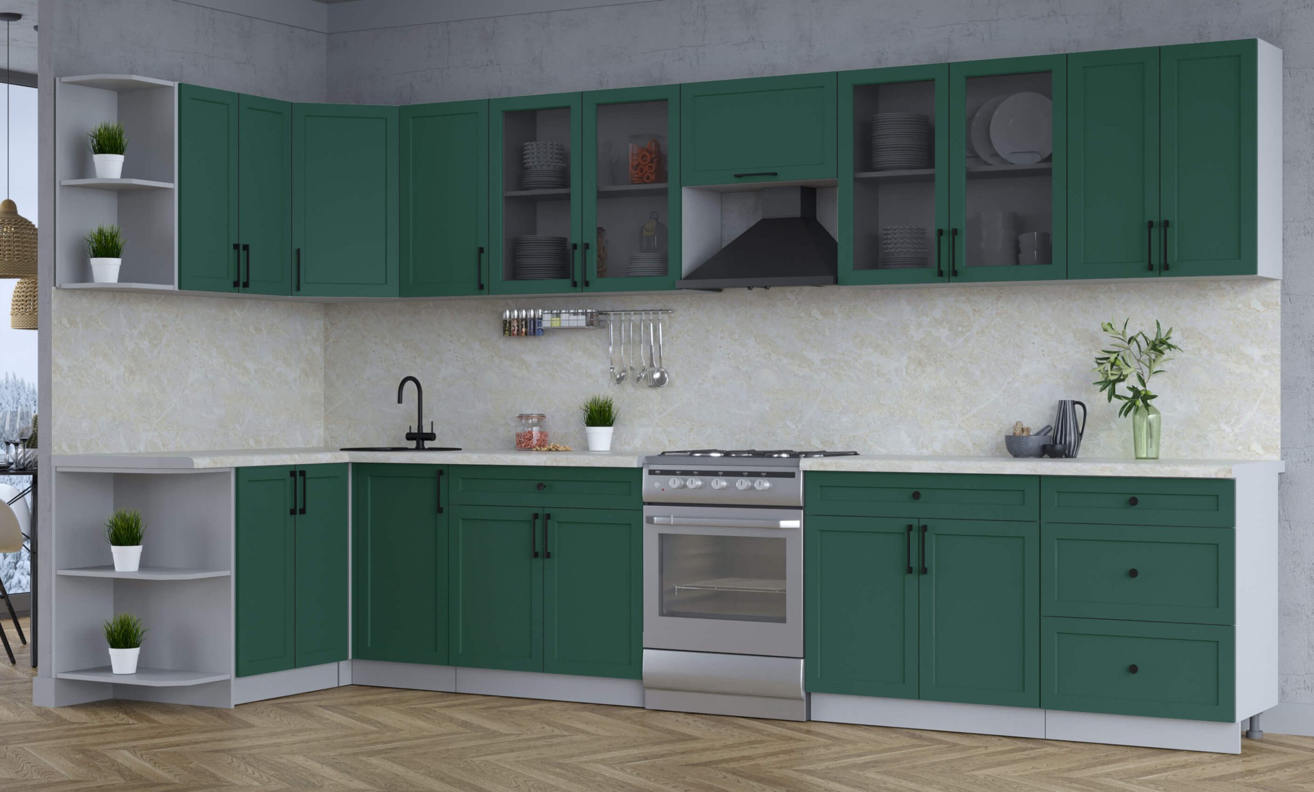 ГОТОВАЯ КУХНЯ ТРЕНД SOFT-TOUCH 1,5Х3,8 (ИЗУМРУД/ ИЗУМРУД) - Yuta.by