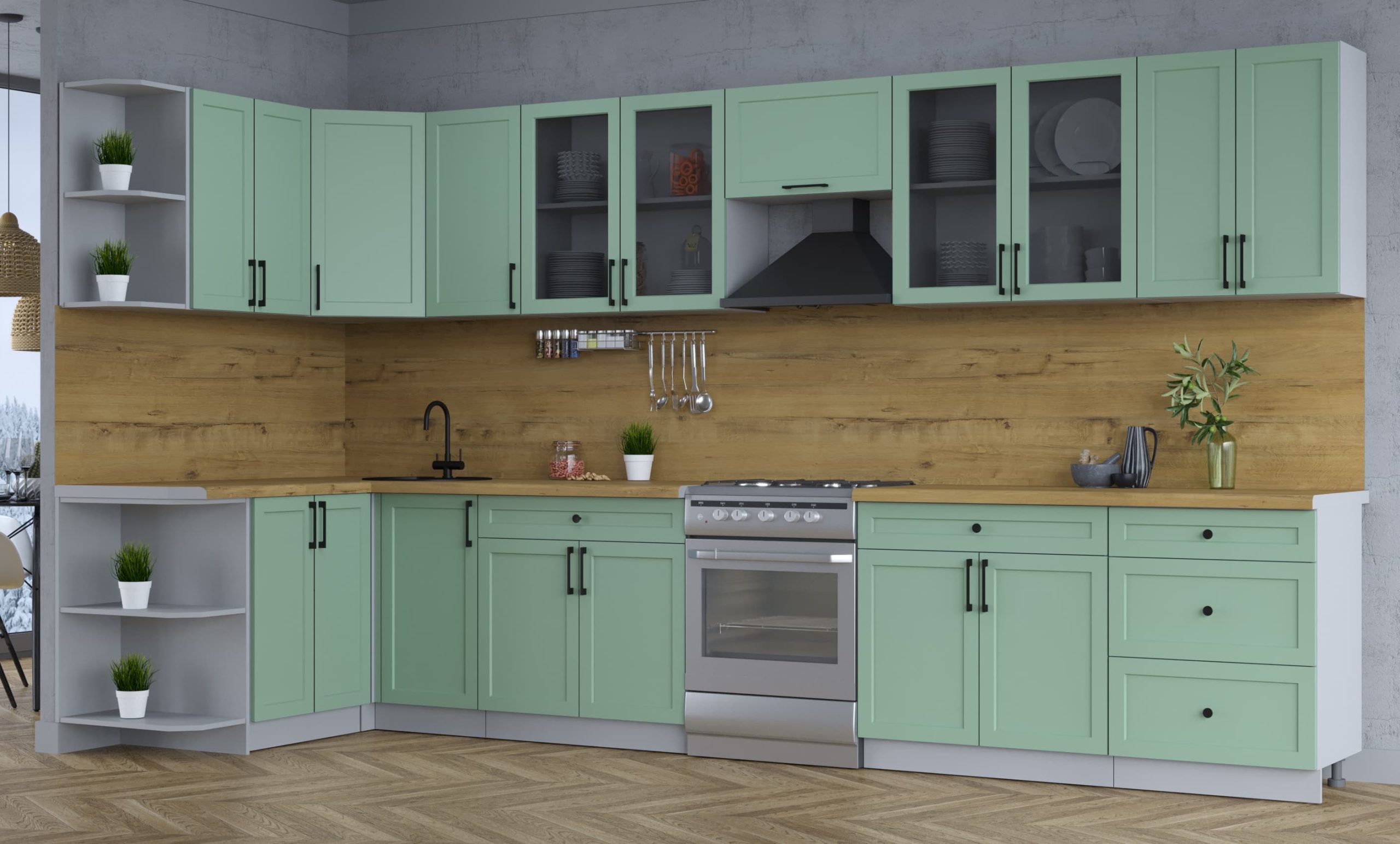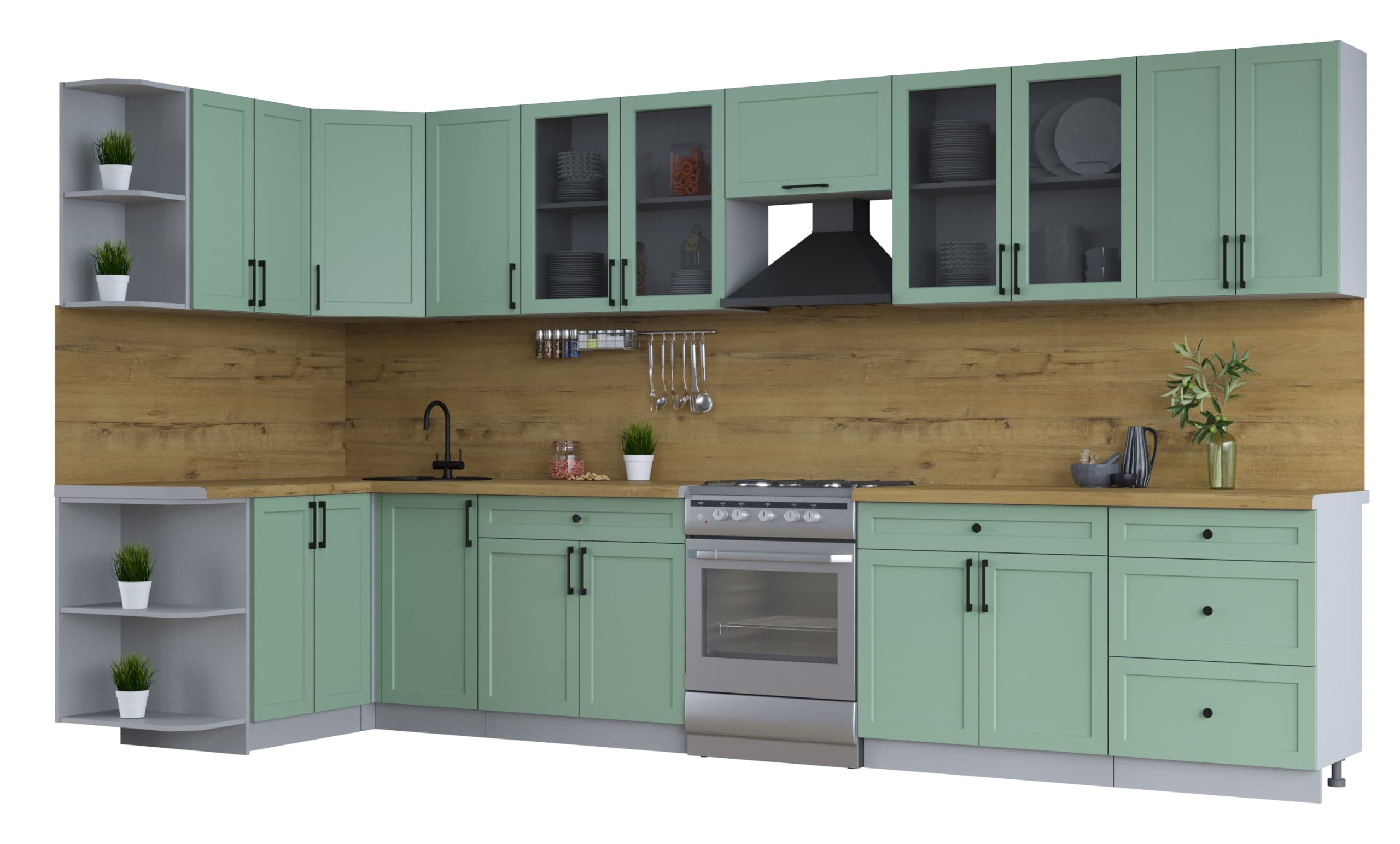 ГОТОВАЯ КУХНЯ ТРЕНД SOFT-TOUCH 1,5Х3,8 (МЯТА/ МЯТА) - Yuta.by