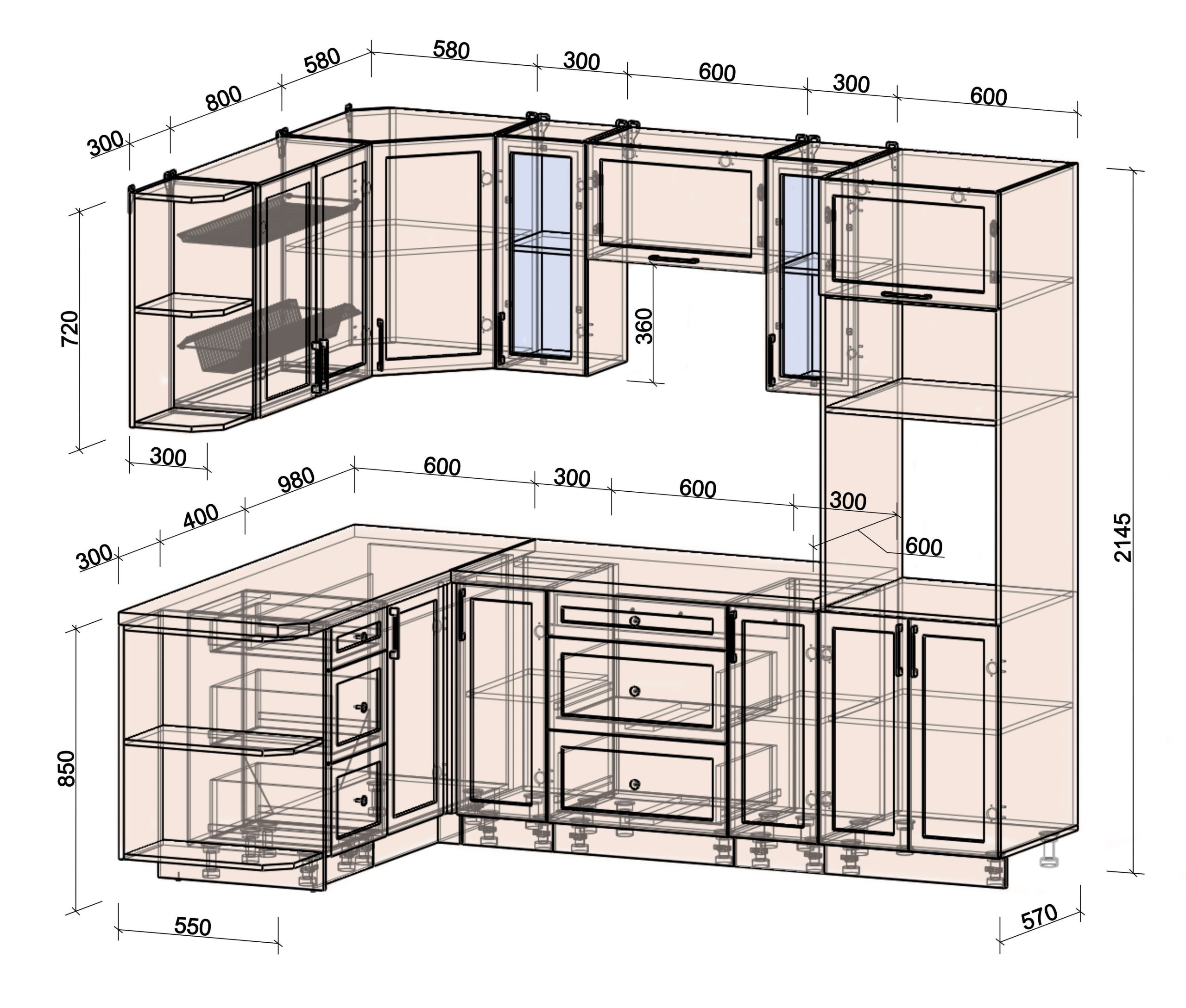 Глубина верхних шкафов