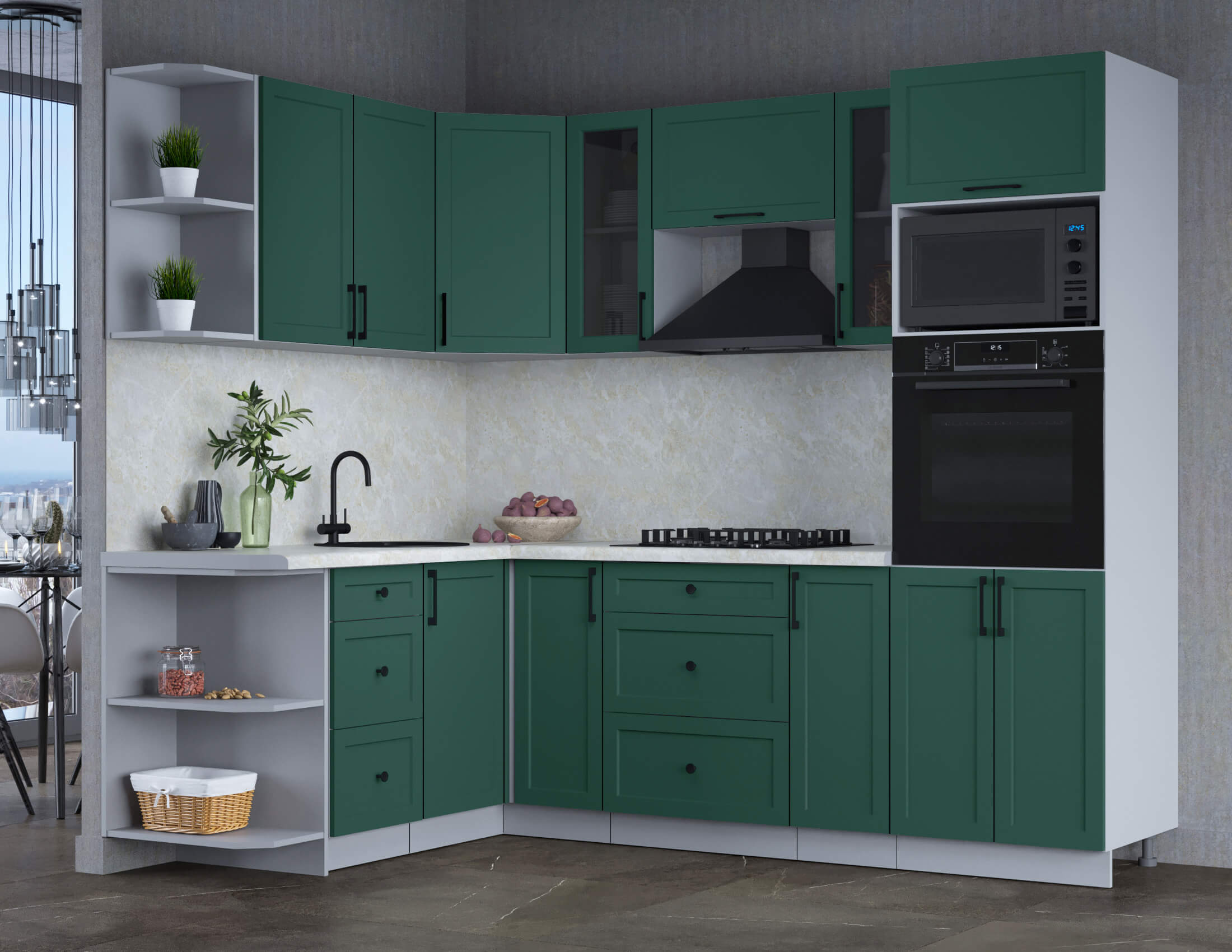 ГОТОВАЯ КУХНЯ ТРЕНД SOFT-TOUCH 1,68Х2,4 (ИЗУМРУД/ ИЗУМРУД) - Yuta.by