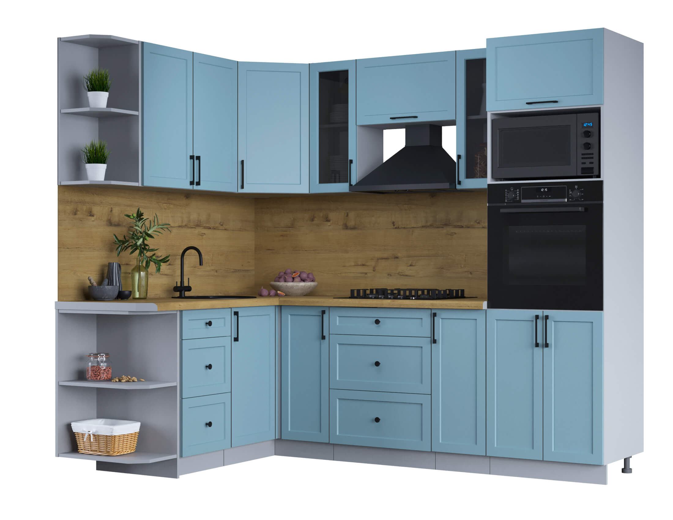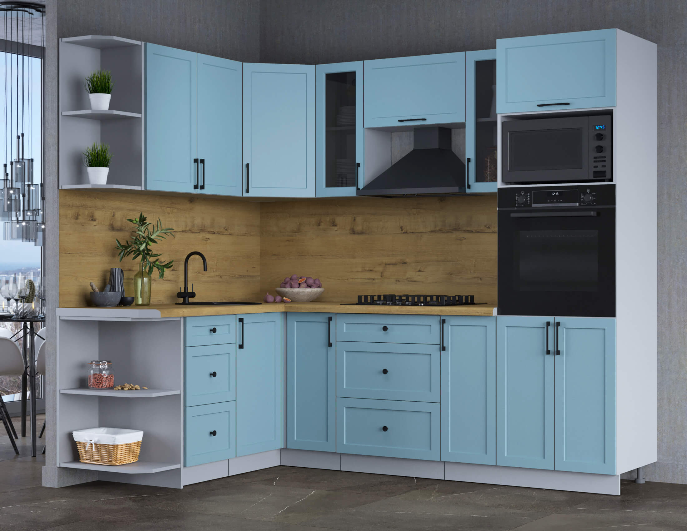 ГОТОВАЯ КУХНЯ ТРЕНД SOFT-TOUCH 1,68Х2,4 (ОКЕАН/ ОКЕАН) - Yuta.by