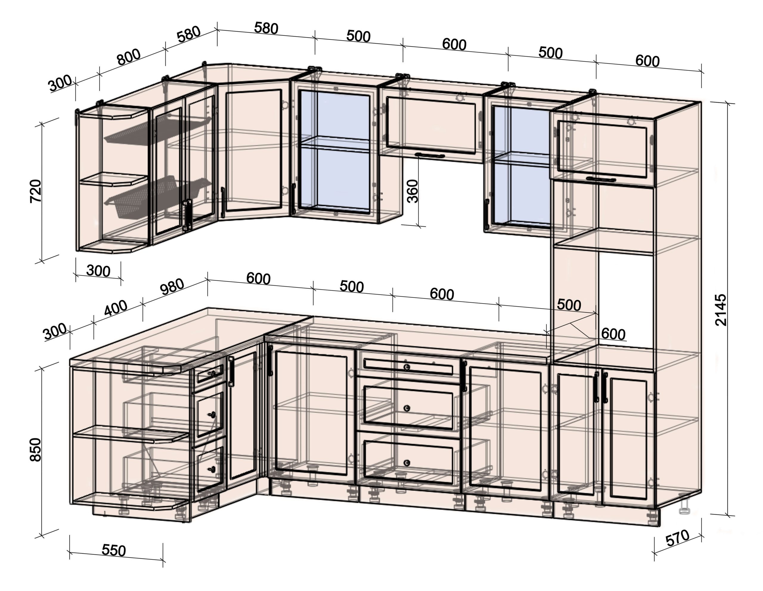 • шкаф нижний под духовой шкаф шириной 600 мм;