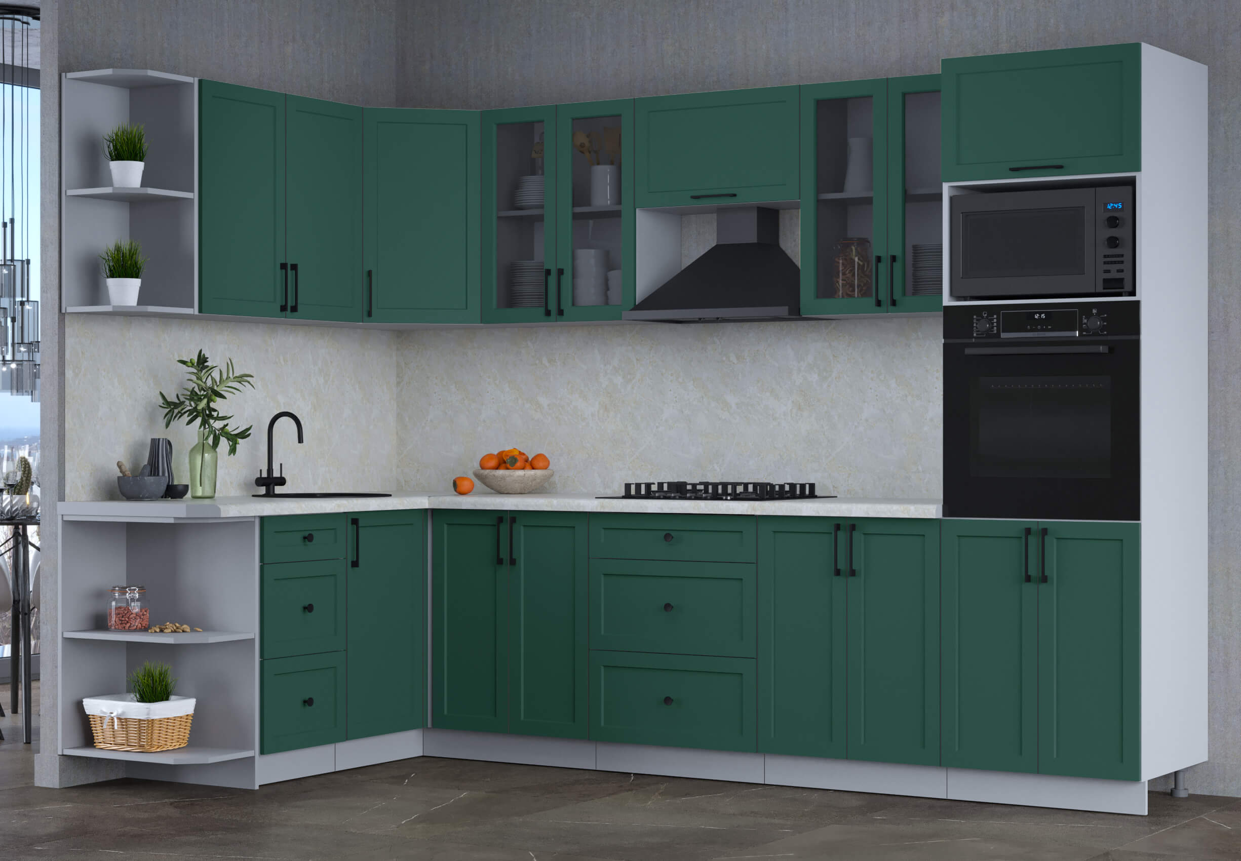 ГОТОВАЯ КУХНЯ ТРЕНД SOFT-TOUCH 1,68Х3,0 (ИЗУМРУД/ ИЗУМРУД) - Yuta.by