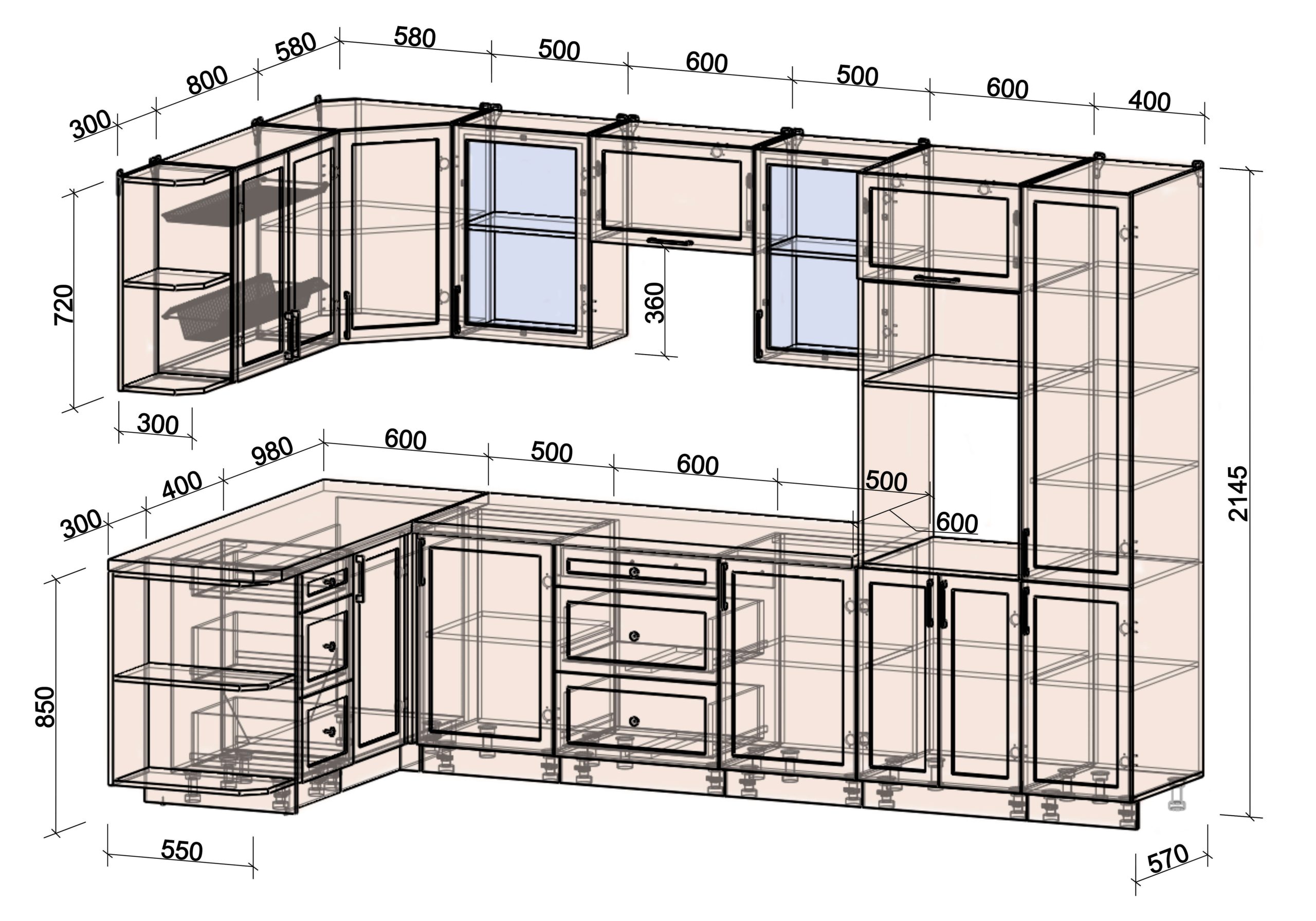 • шкаф нижний под духовой шкаф шириной 600 мм;