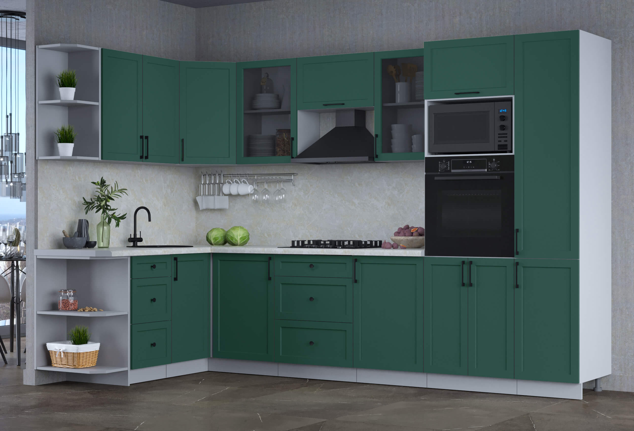 ГОТОВАЯ КУХНЯ ТРЕНД SOFT-TOUCH 1,68Х3,2 (ИЗУМРУД/ ИЗУМРУД) - Yuta.by